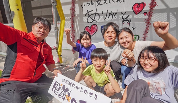 社長さんを始め、施工に携わった従業員の方々、明野ショールームの方々と全ての従業員の皆さんが親切で丁寧な対応をしていただき完成となりました。自分で選んだ色に少し不安を感じていましたが、出来栄えにとても満足しています。子ども達も「新築に戻った」との声で、とても感謝しています。今後ともよろしくお願いします。