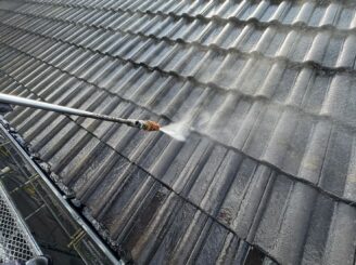 高圧洗浄では、屋根のコケや外壁の汚れなどを綺麗に洗って落としていきますが、この作業が意外と大事です。