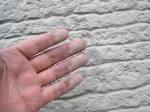 外壁の劣化サインで多いのは、ひび割れや手に白い粉が浮くようになるチョーキング(塗膜の劣化によって粉状になる現象)、そして変色などです。