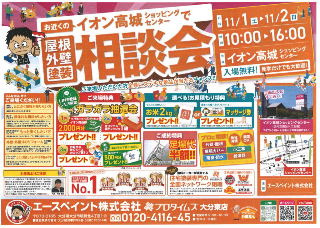 2025/11/1(土)・11/2(日)の2日間 『イオン高城ショッピングセンター』にて、屋根外壁塗装の相談会を行います!