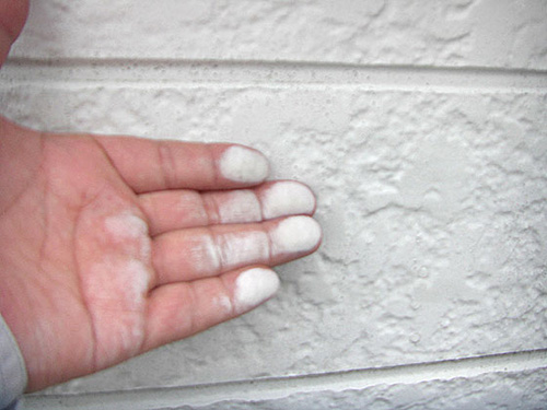 手で触れると白い粉(チョークのような粉)が付く(チョーキング現象)