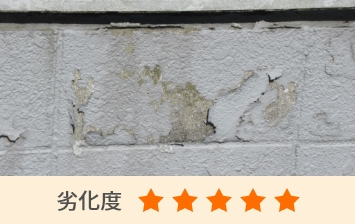塀の表面がボロボロと剥がれ落ちている