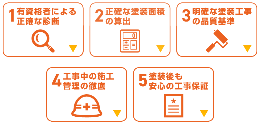 私たちは、工事の実施について診断を行なったその日に契約を迫るようなことは原則行ないません。診断結果をもとに、じっくり検討したうえで判断いただけます。外壁塗装工事が初めての方でも安心してご相談ください。
