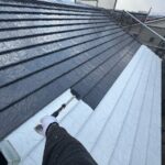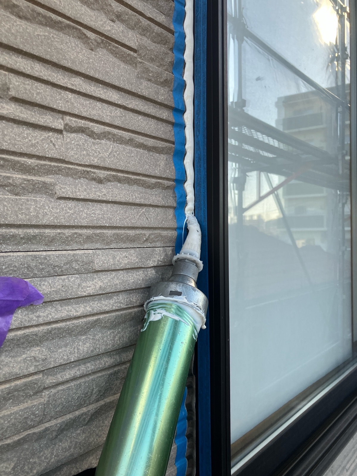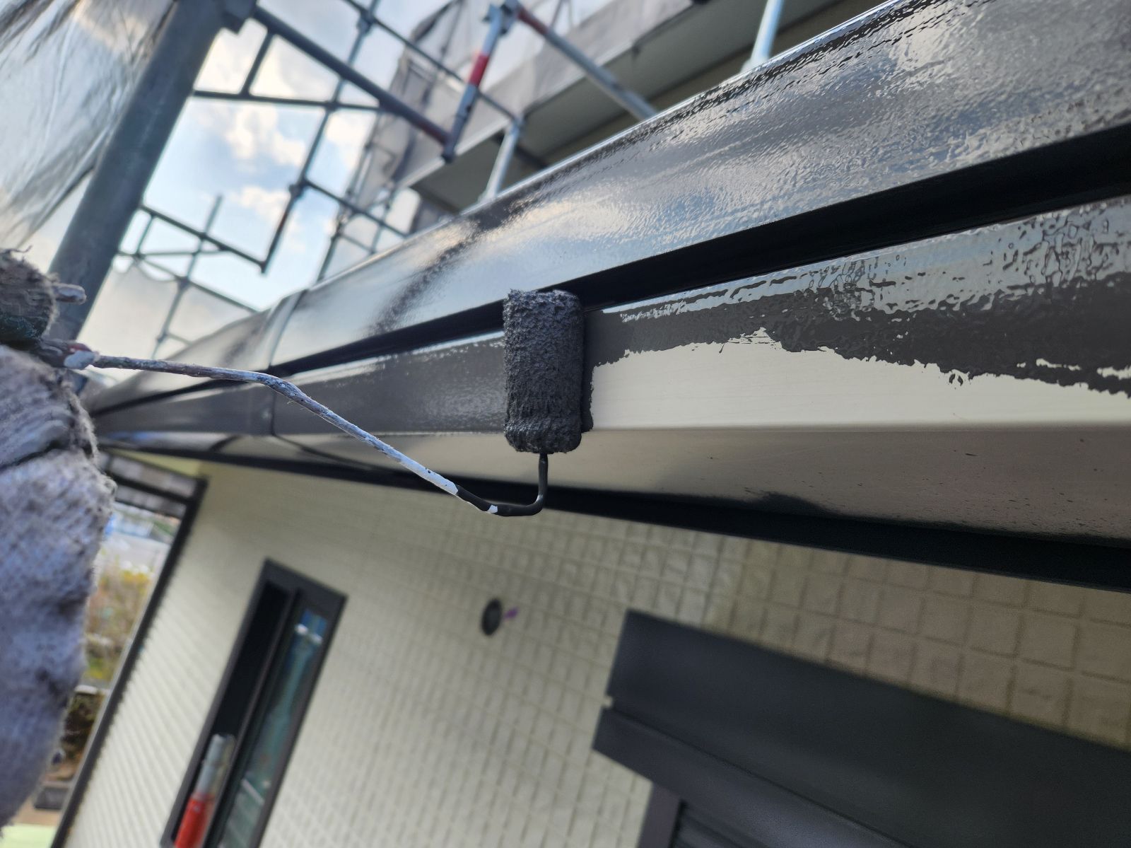 軒樋塗装 1回目、縦樋塗装 2回目の様子です