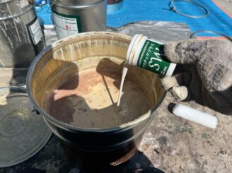 防カビ材のアステックプラスSWを上塗材に混ぜて使用
