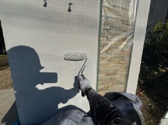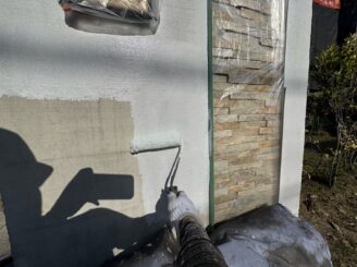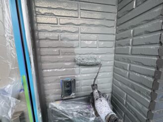 ■外壁塗装作業 上塗り(玄関廻り)