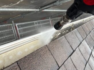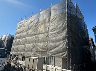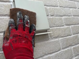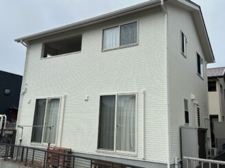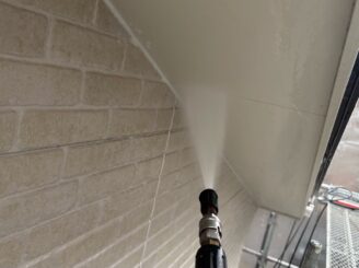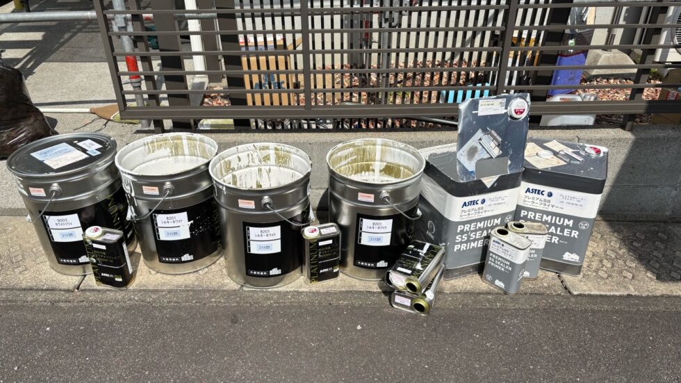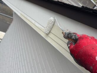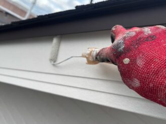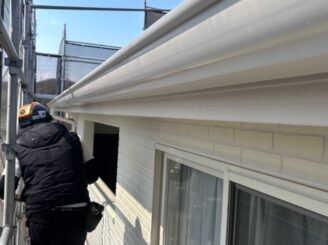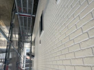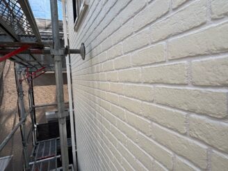 外壁塗装作業 上塗り3回目 色:ホワイトリリィ