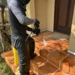 付帯箇所、玄関アプローチ 高圧洗浄の様子です