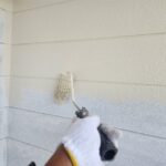 外壁塗装作業 上塗り1回目の様子です