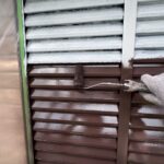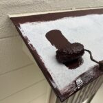 小庇塗装、ベランダ笠木塗装 1回目の様子です