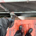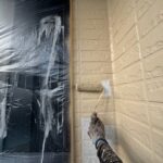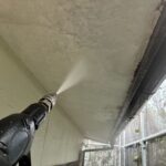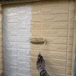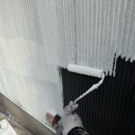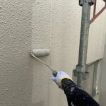大分市M様邸 軒天塗装/外壁上塗り作業