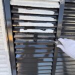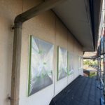 鼻隠し・破風板塗装、室外機カバー塗装 1回目の様子です