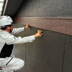 大分市H様邸 外壁上塗り作業