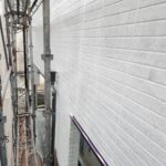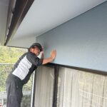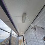 大分市I様邸 軒天塗装/外壁上塗り作業