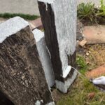 木調コンクリート柱塗装 上塗り1回目の様子です