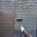 佐伯市F様邸 付帯部塗装/外塀塗装/屋根上塗り作業