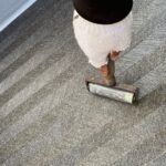 ベランダ防水 長尺シート ボンド塗布の様子です
