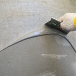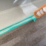 ベランダ防水 長尺シート ボンド塗布の様子です