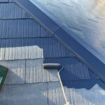 外壁塗装作業 上塗り2回目の様子です(2階)