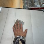ベランダ防水 下地調整 → プライマー塗布の様子です