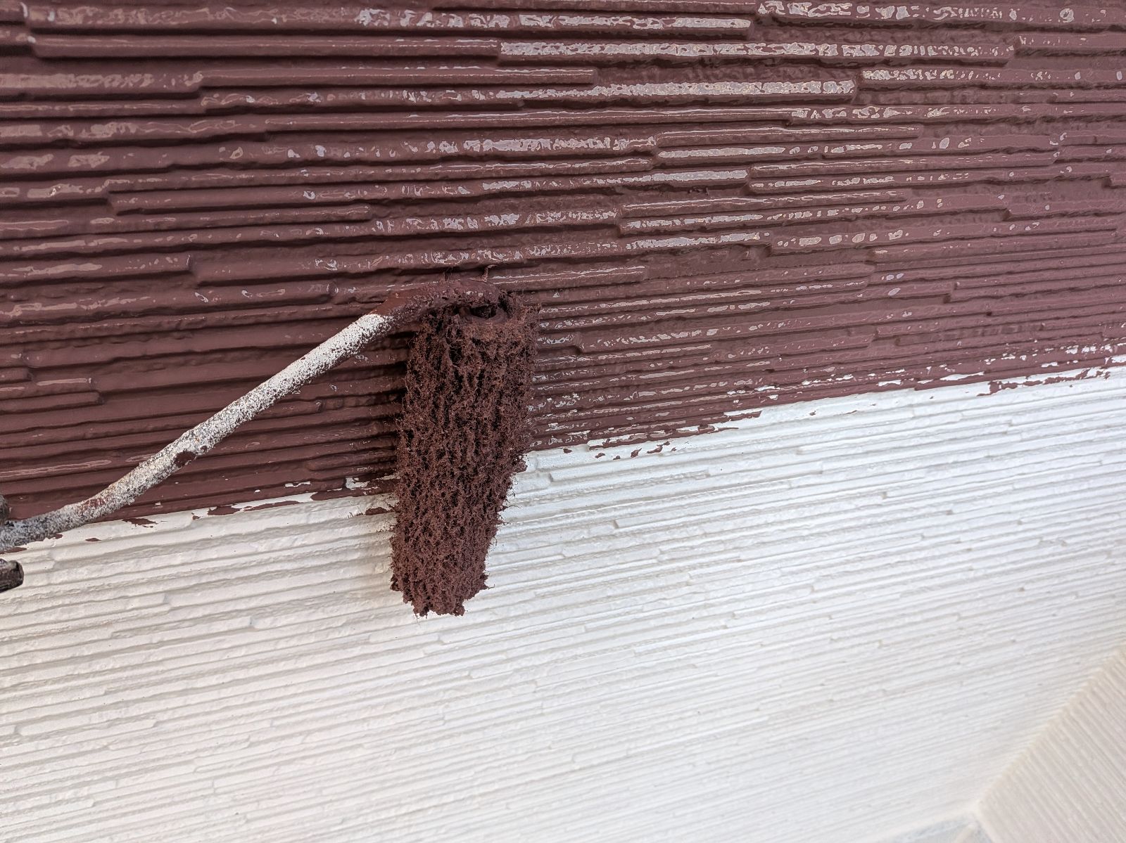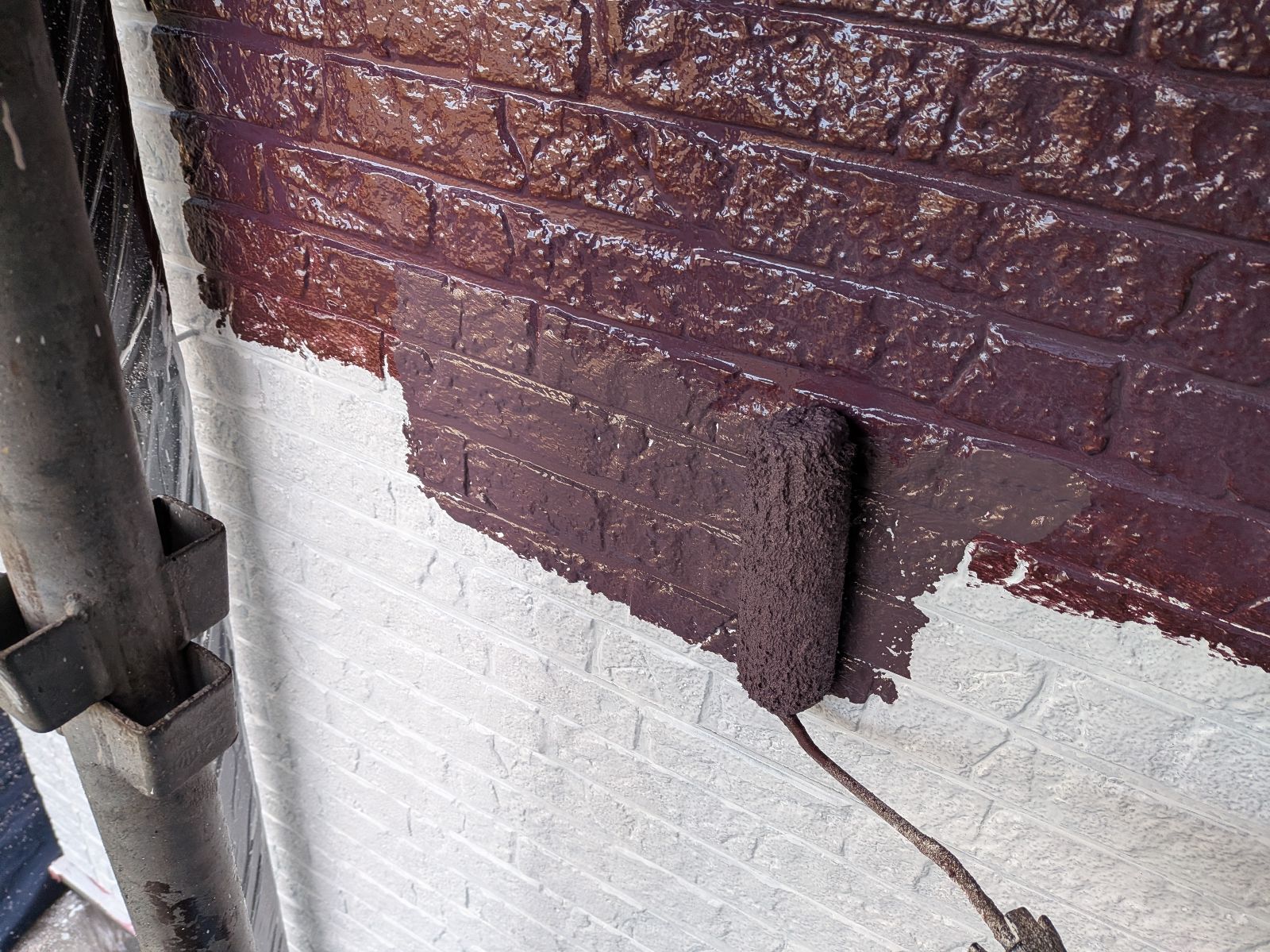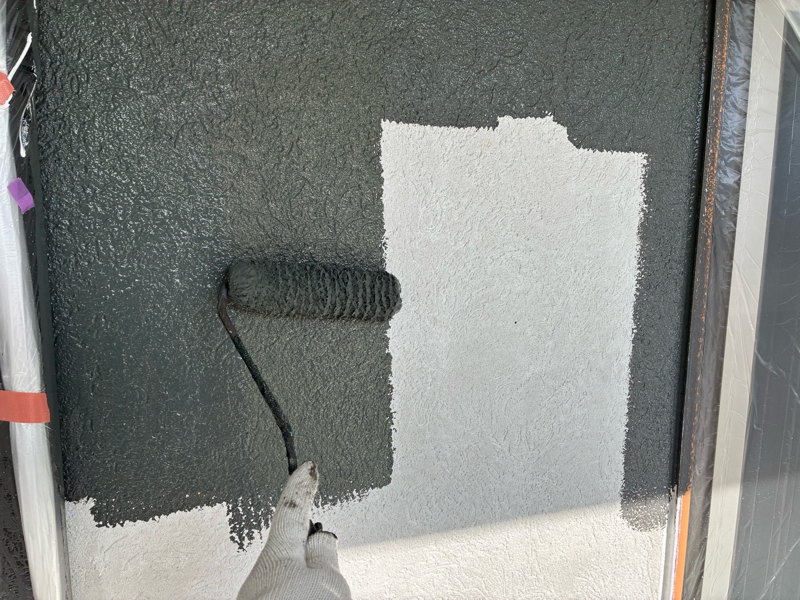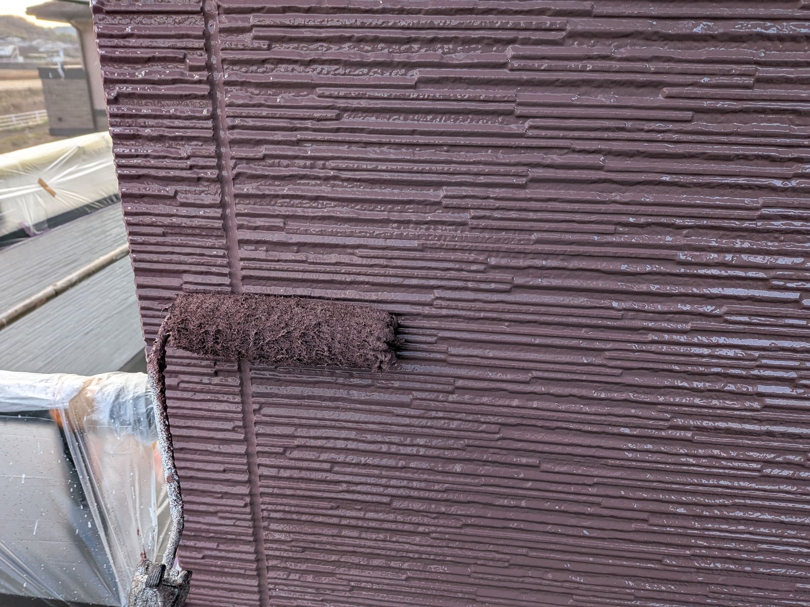 外壁塗装作業 上塗り1回目の様子です