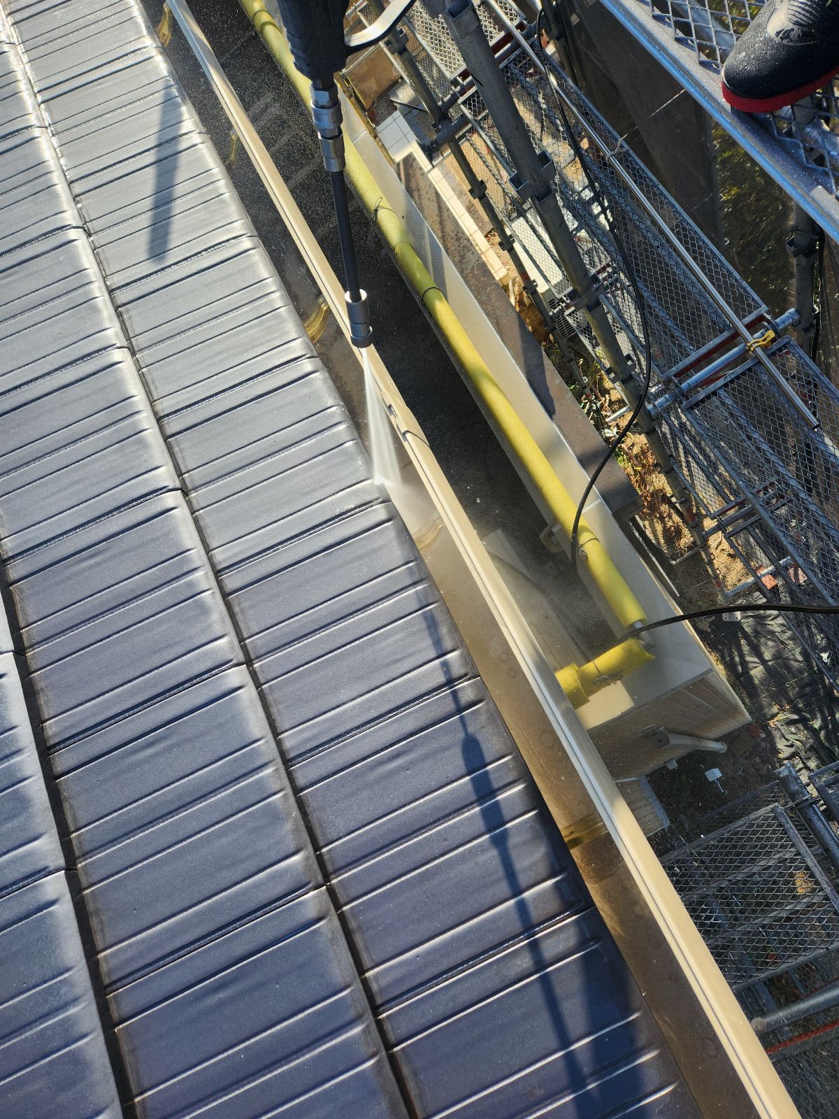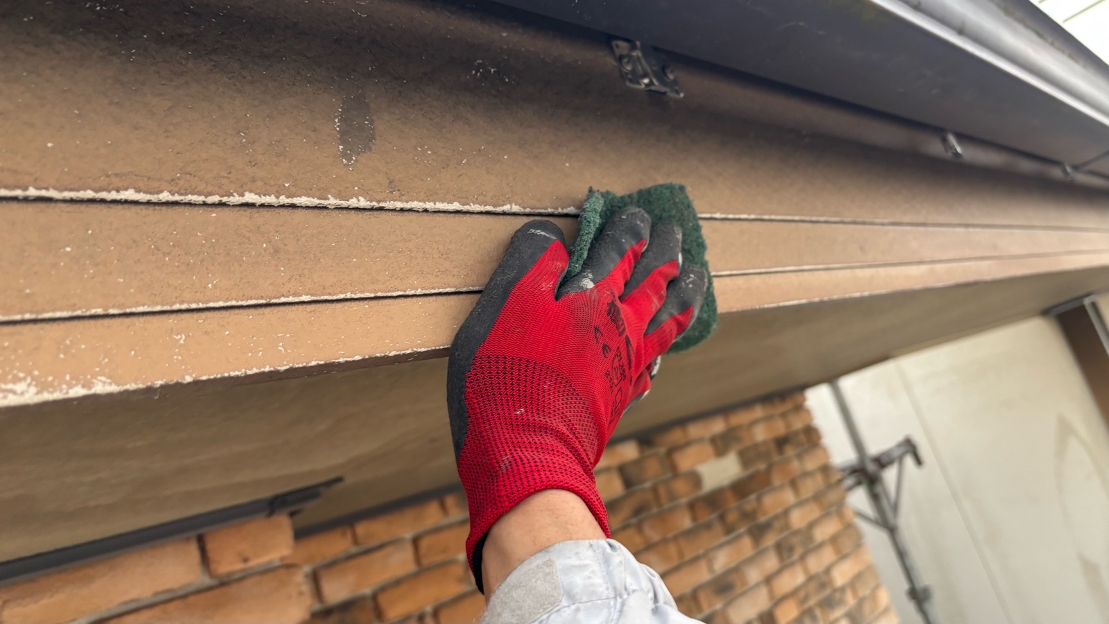 雨樋塗装、鼻隠し・破風板塗装 1回目の様子です