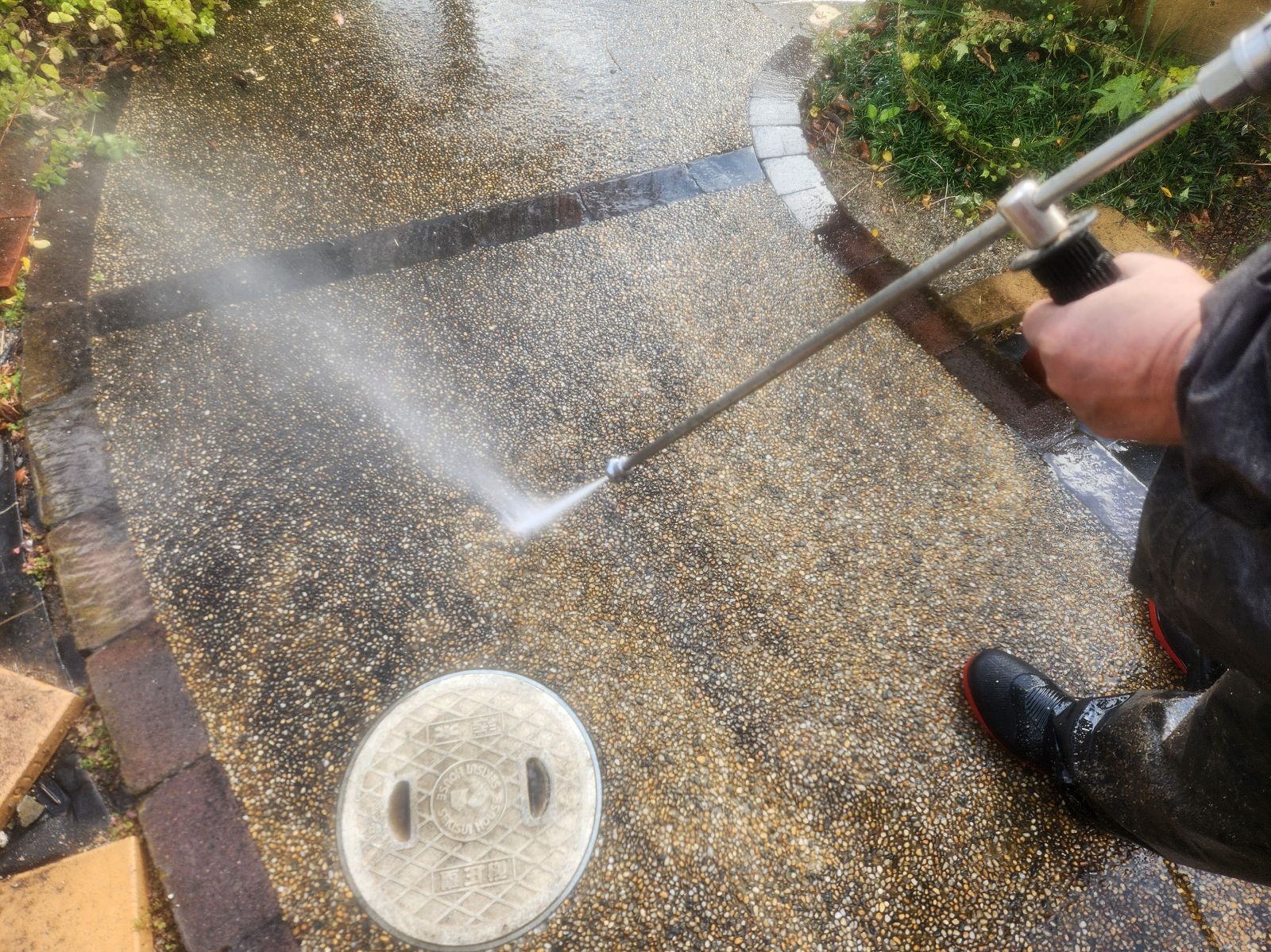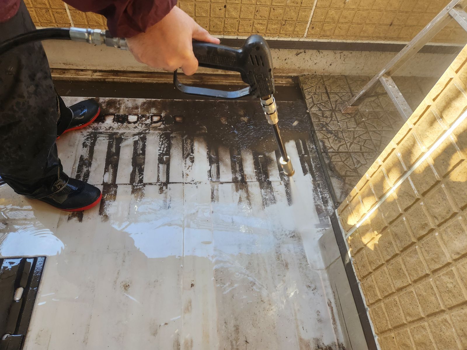 駐車場土間、外塀 高圧洗浄の様子です