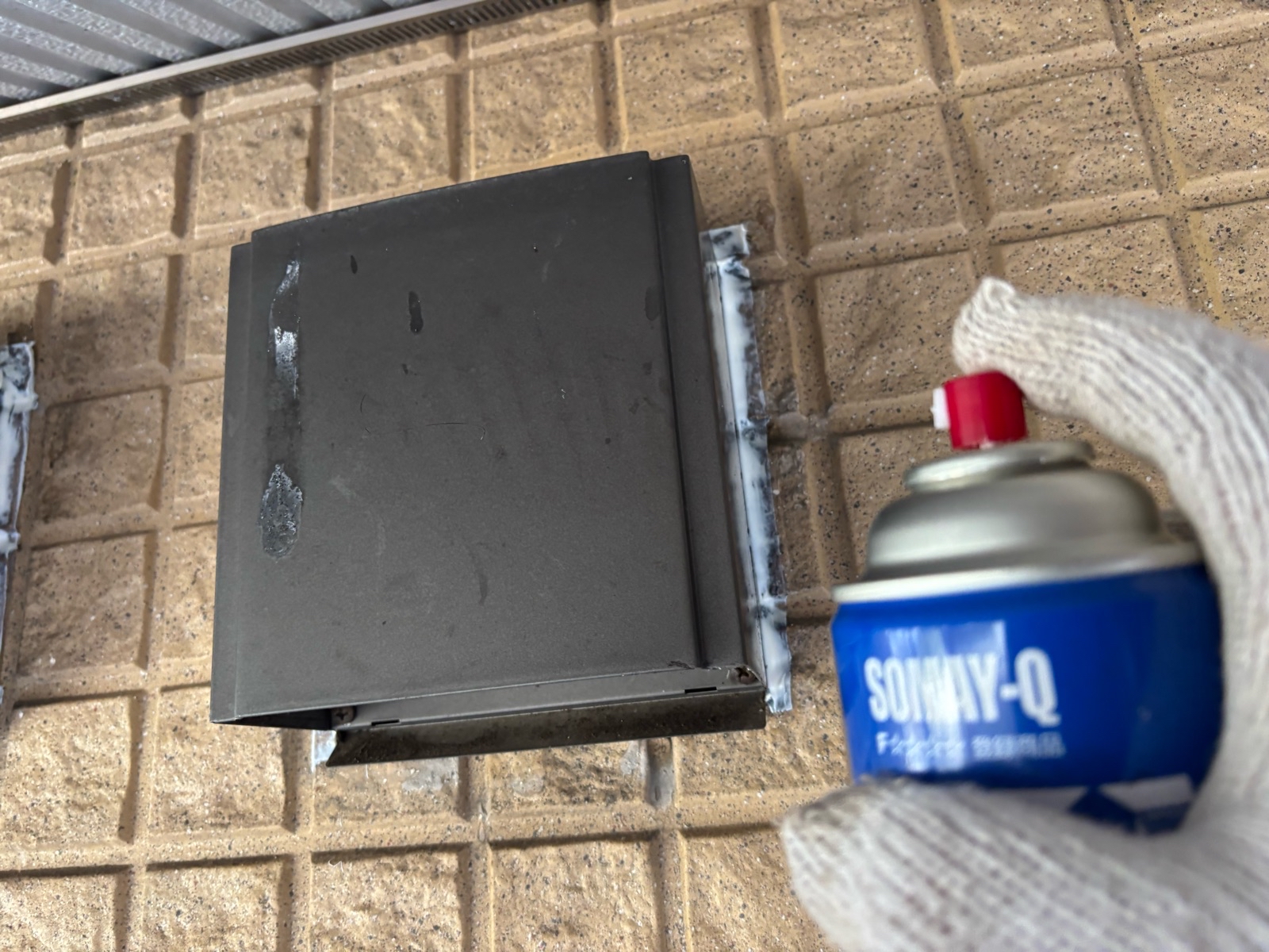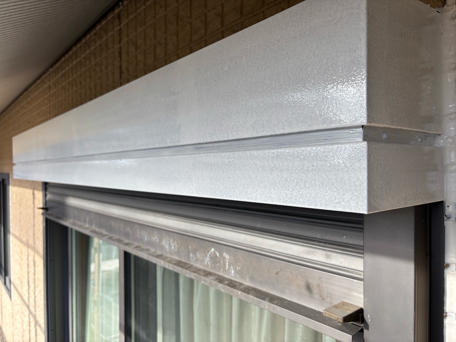室外機カバー ケレン作業、上塗り1回目の様子です