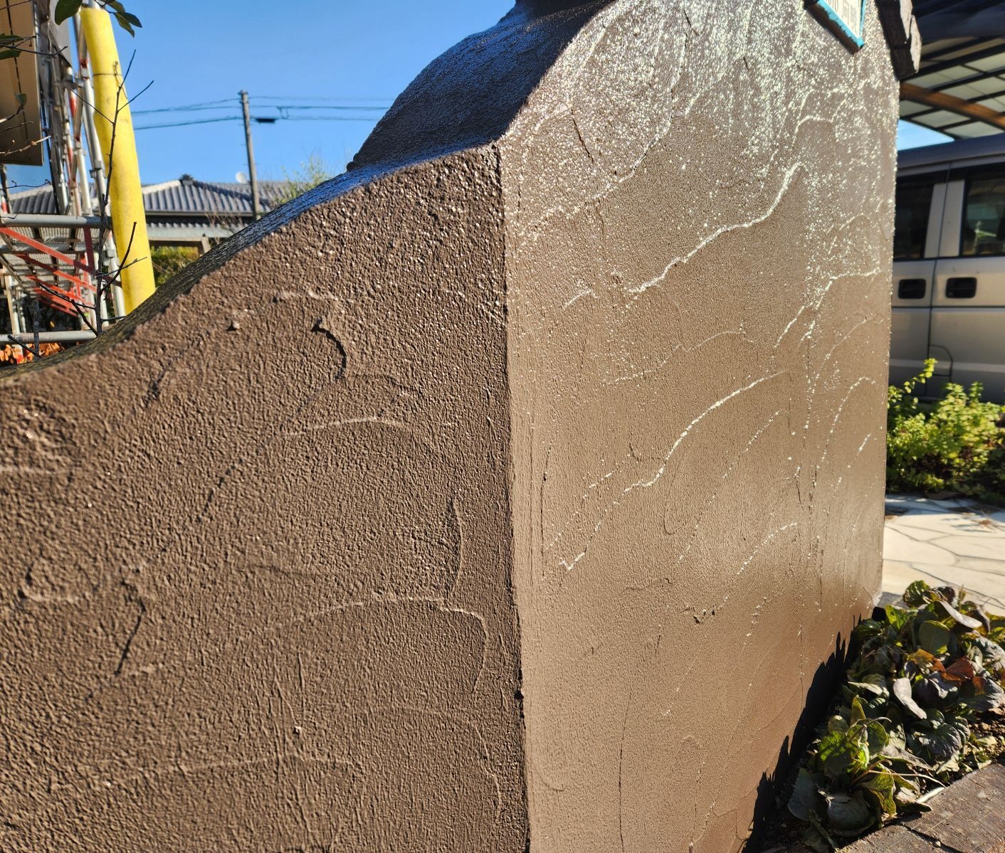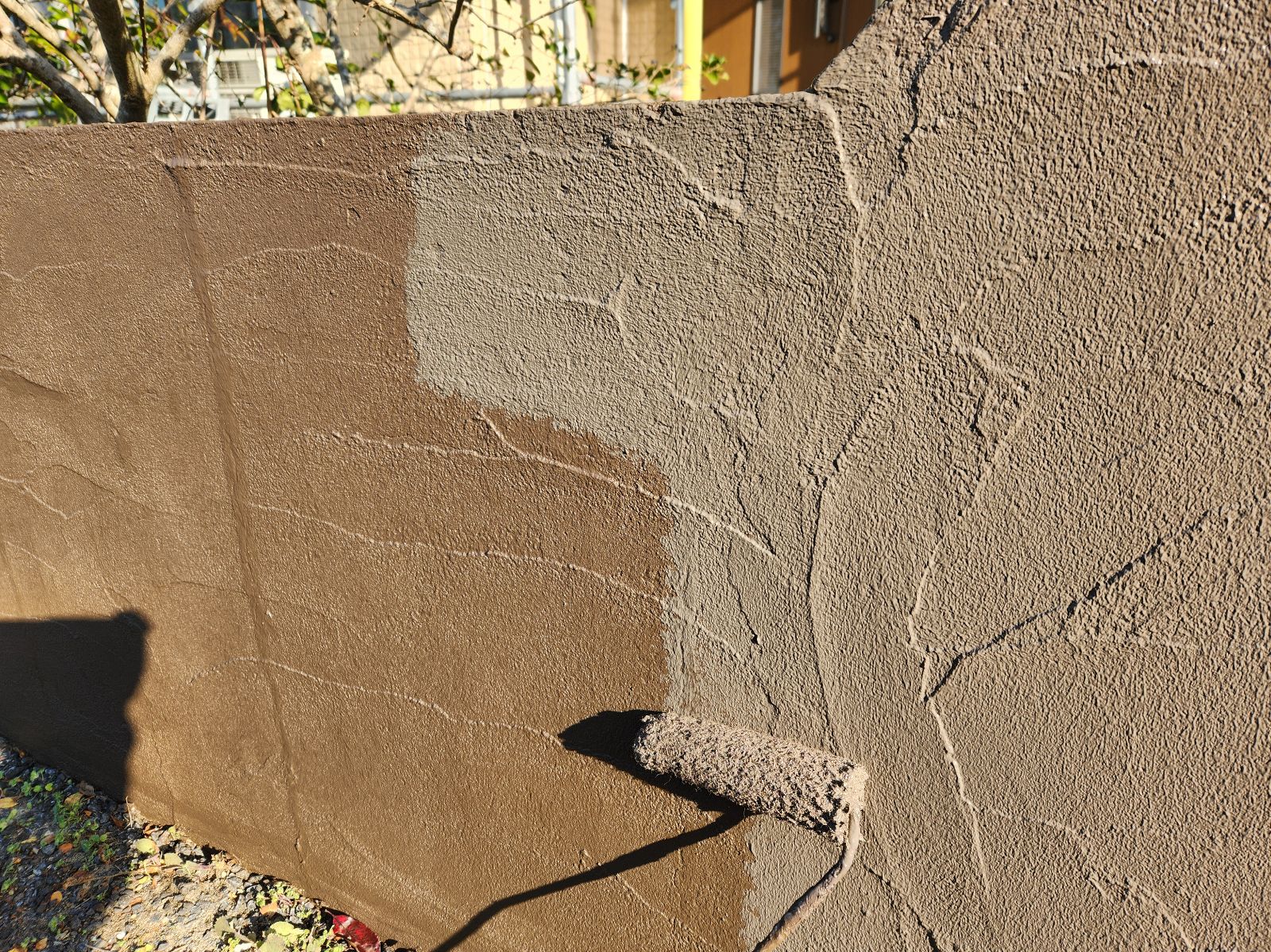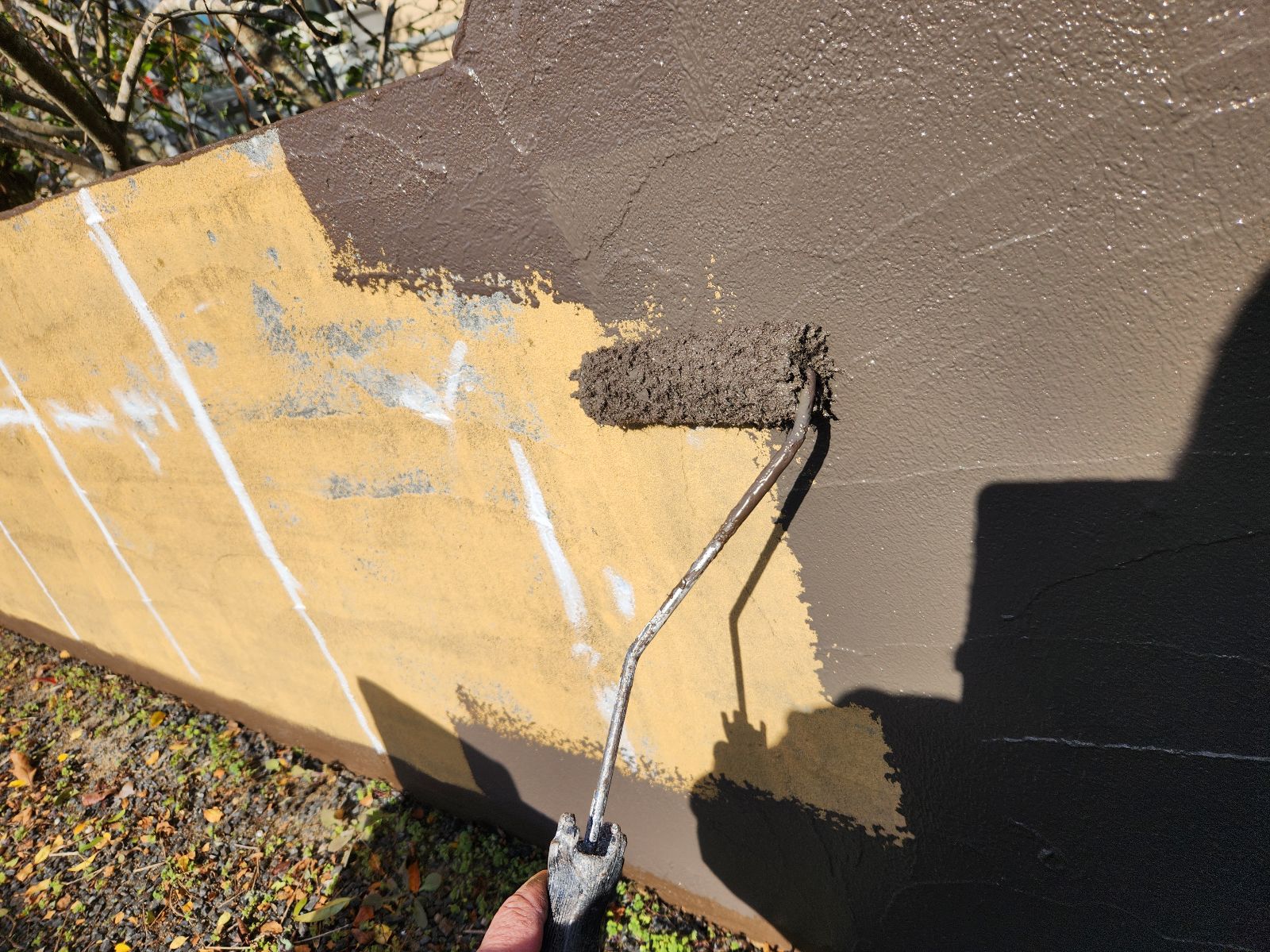 外塀塗装 1回目・2回目の様子です