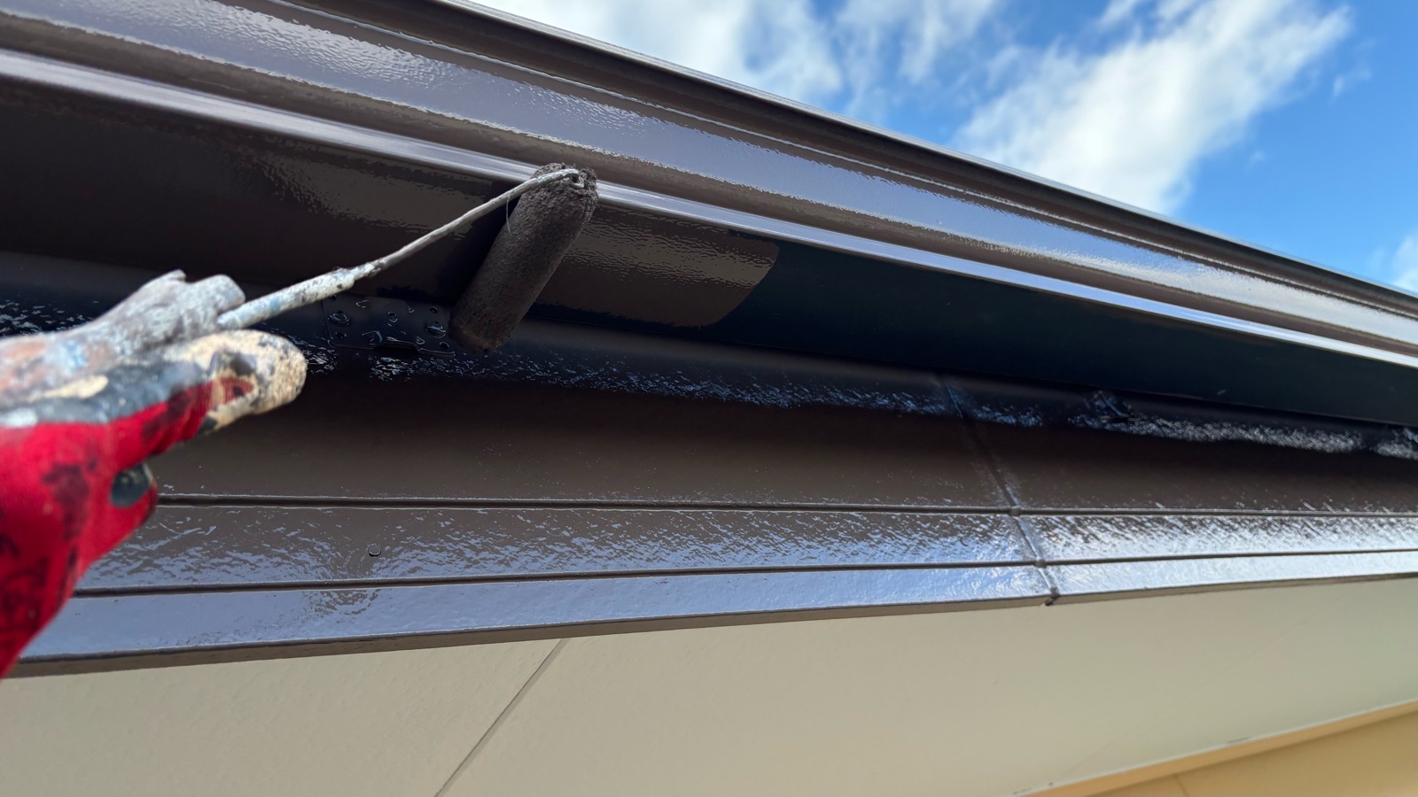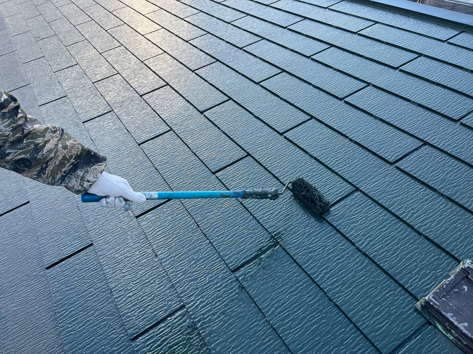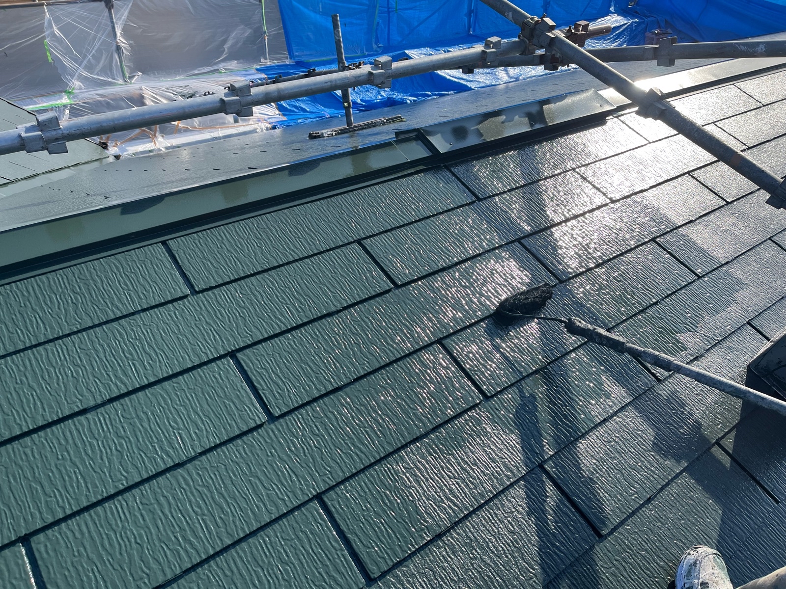 屋根塗装作業 上塗り2回目の様子です