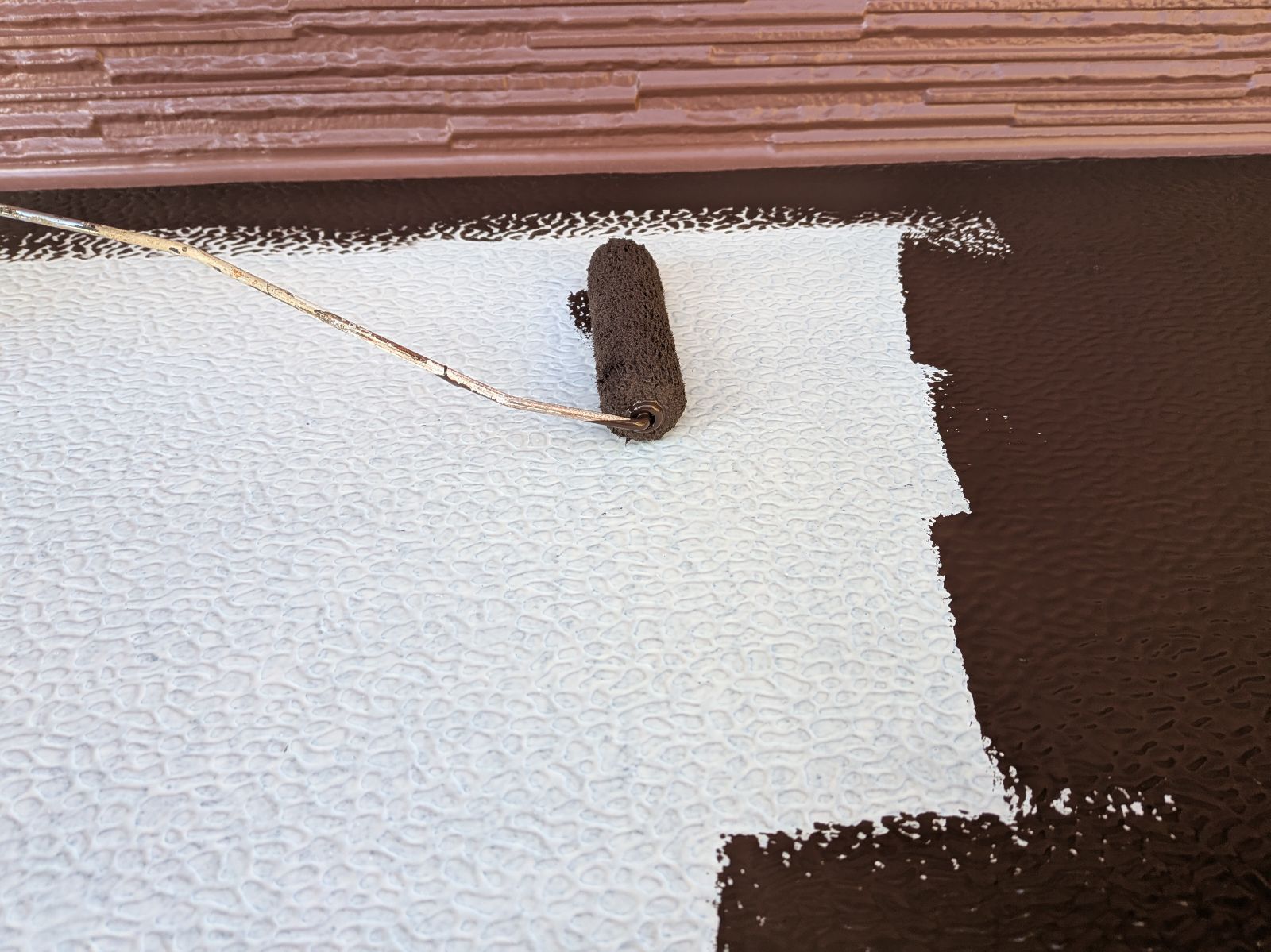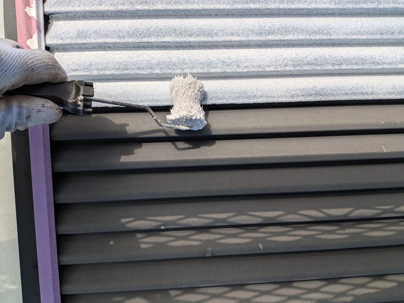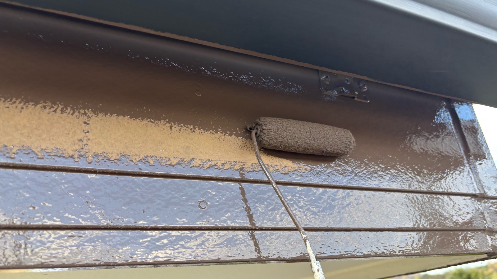 小庇塗装 上塗り1回目の様子です