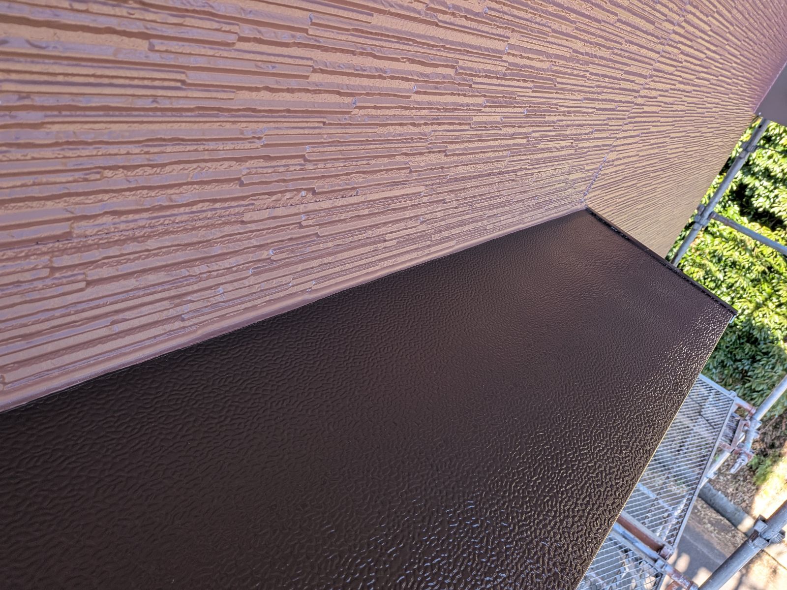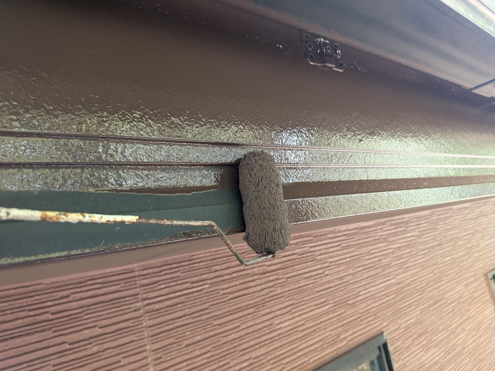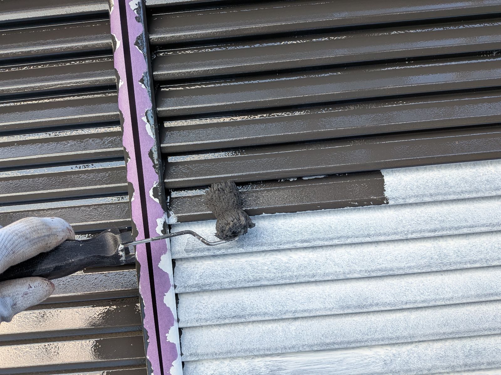 小庇塗装 上塗り1回目の様子です