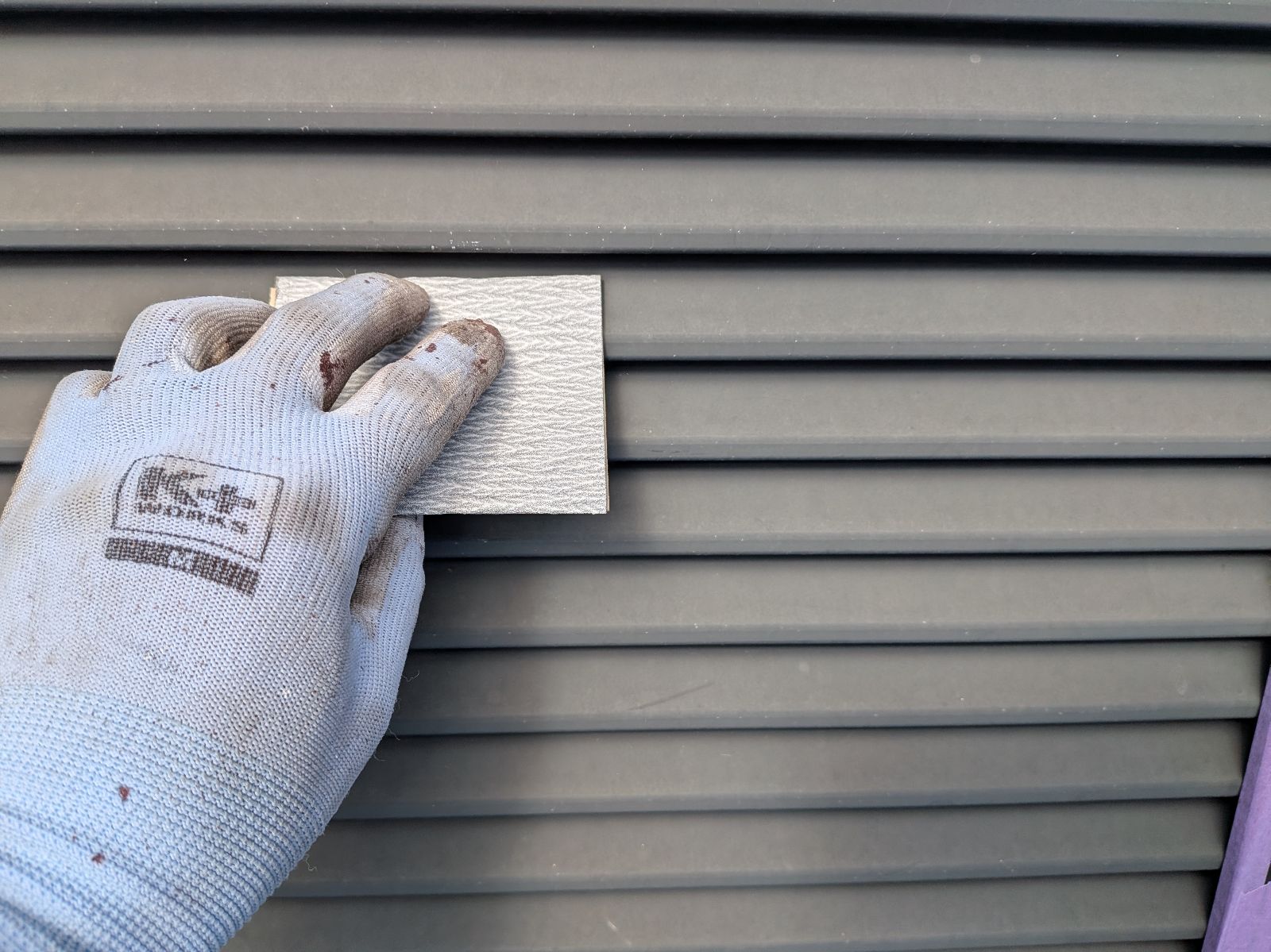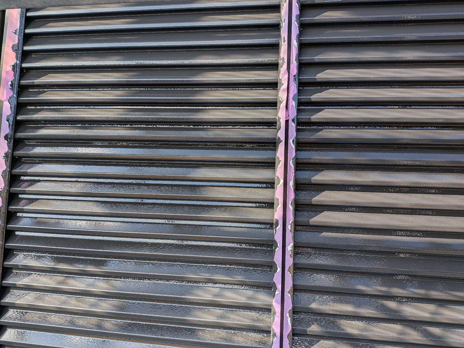 雨戸塗装 上塗り作業の様子です