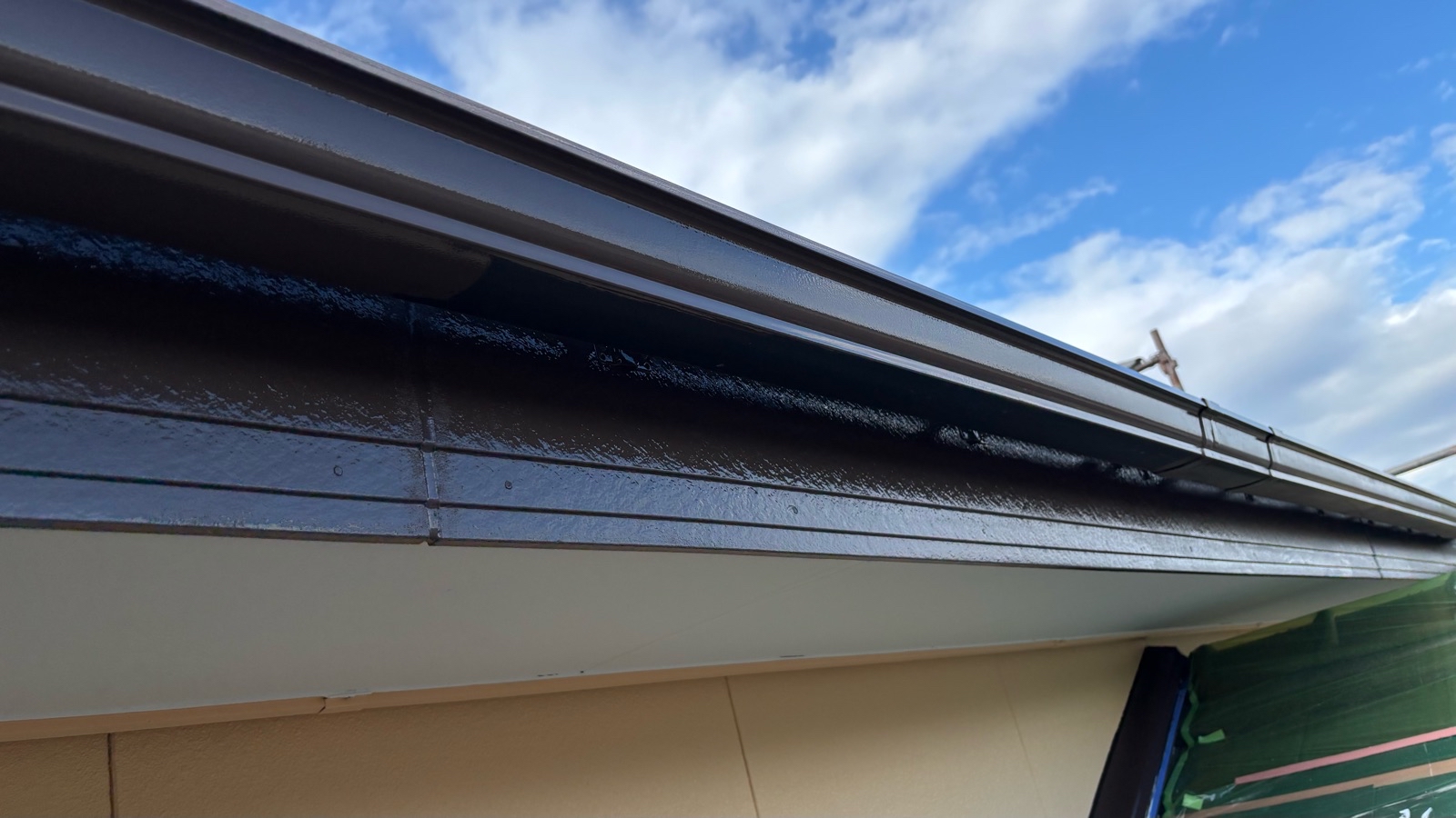 鼻隠し・破風板塗装、雨樋塗装 1回目の様子です