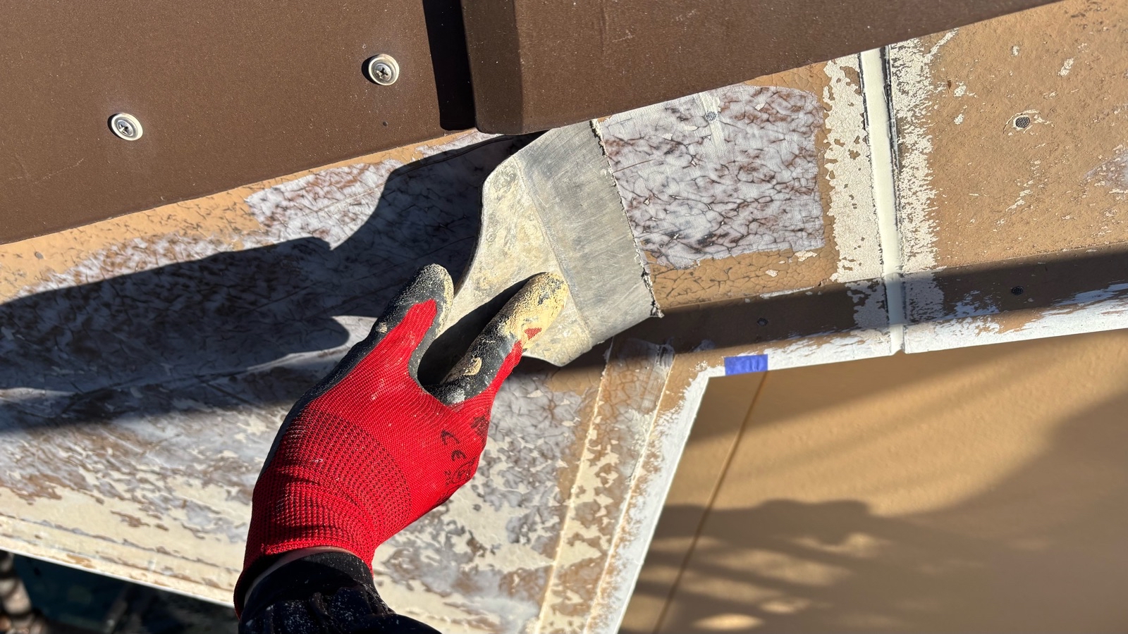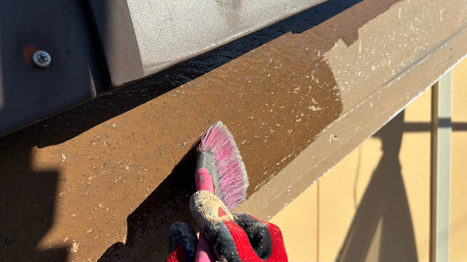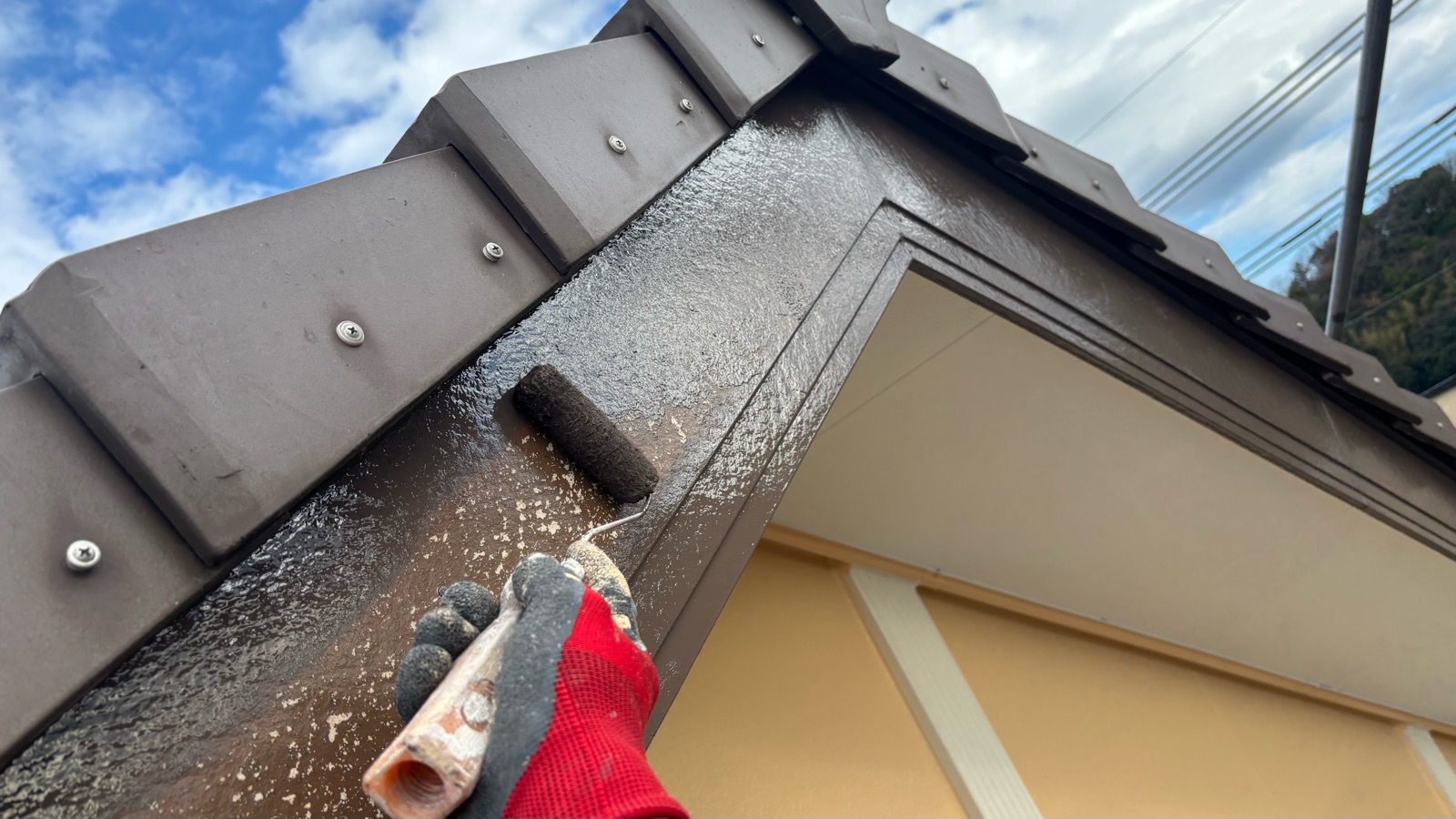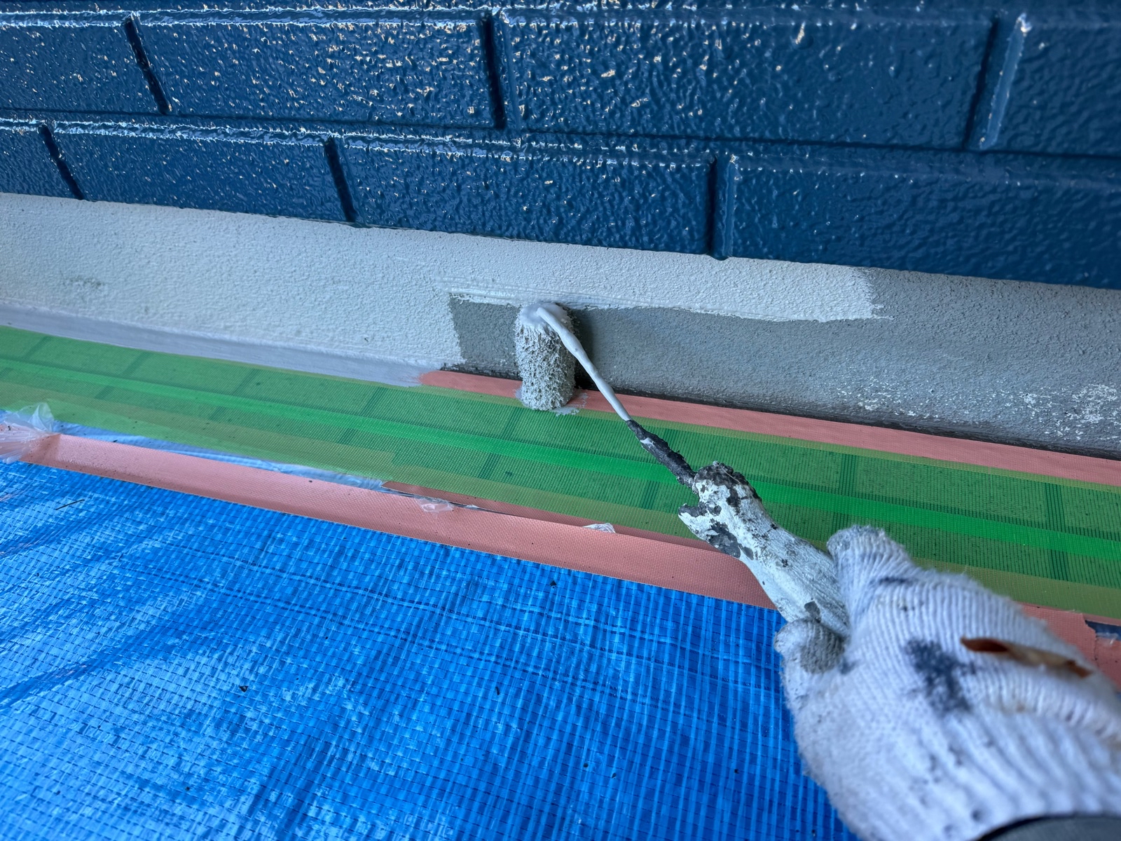 付帯部 下塗り作業の様子です