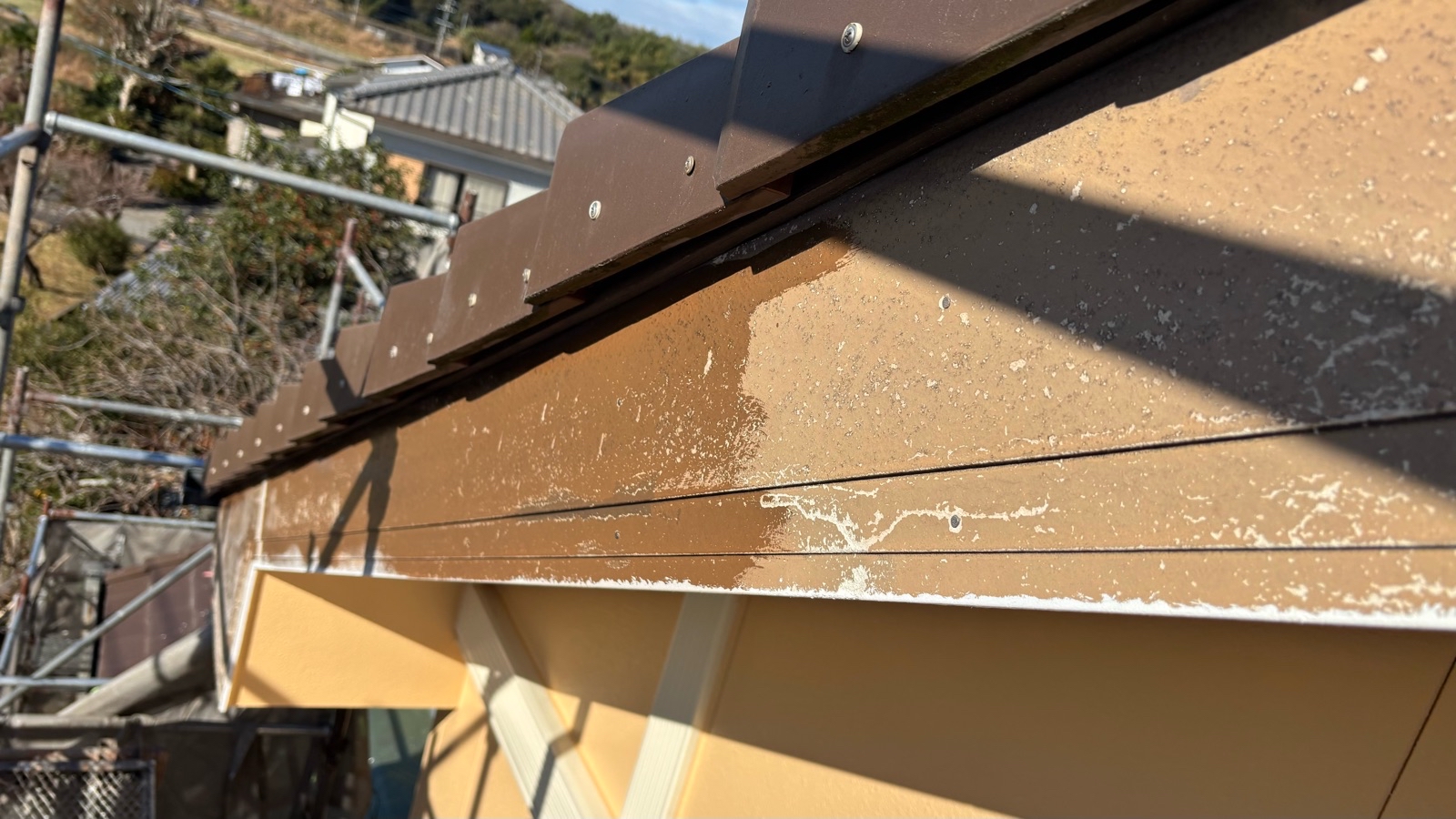 鼻隠し・破風板塗装 1回目の様子です