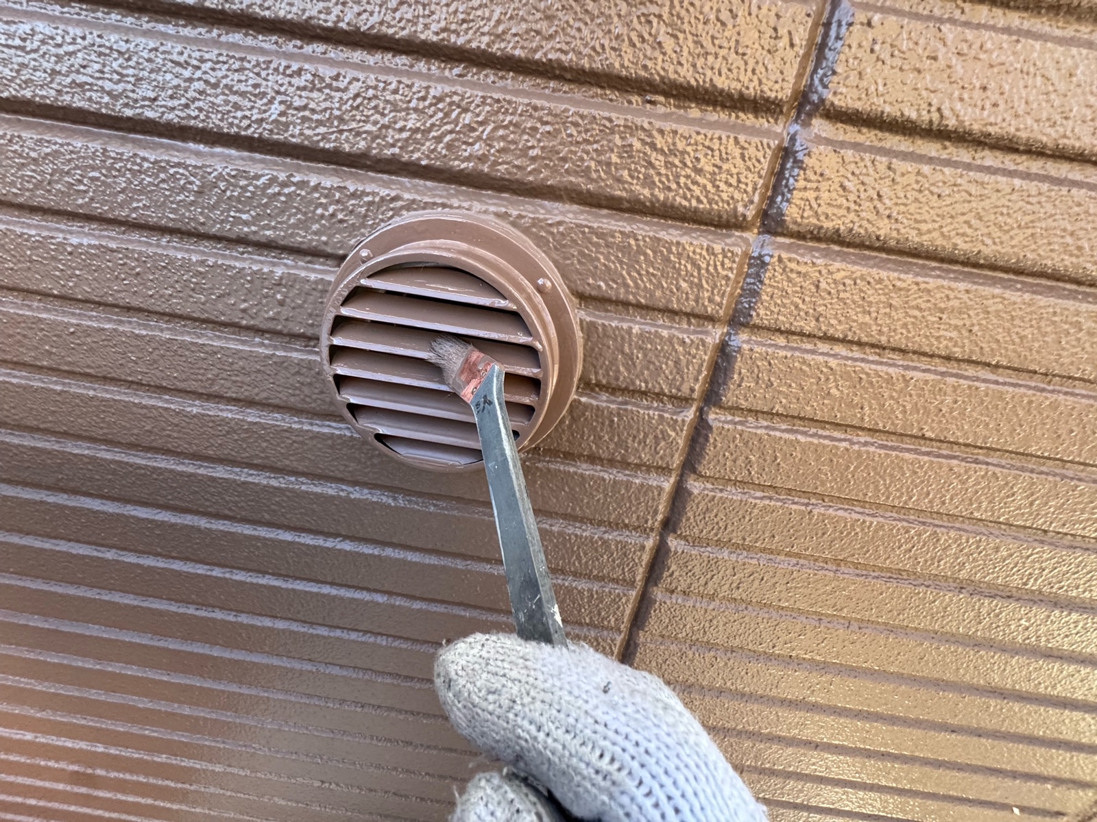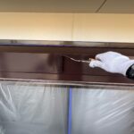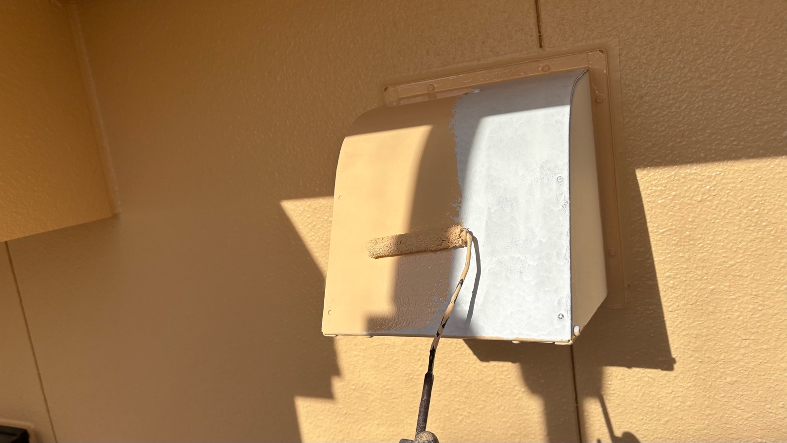 換気フード塗装、室外機カバー塗装 1回目の様子です