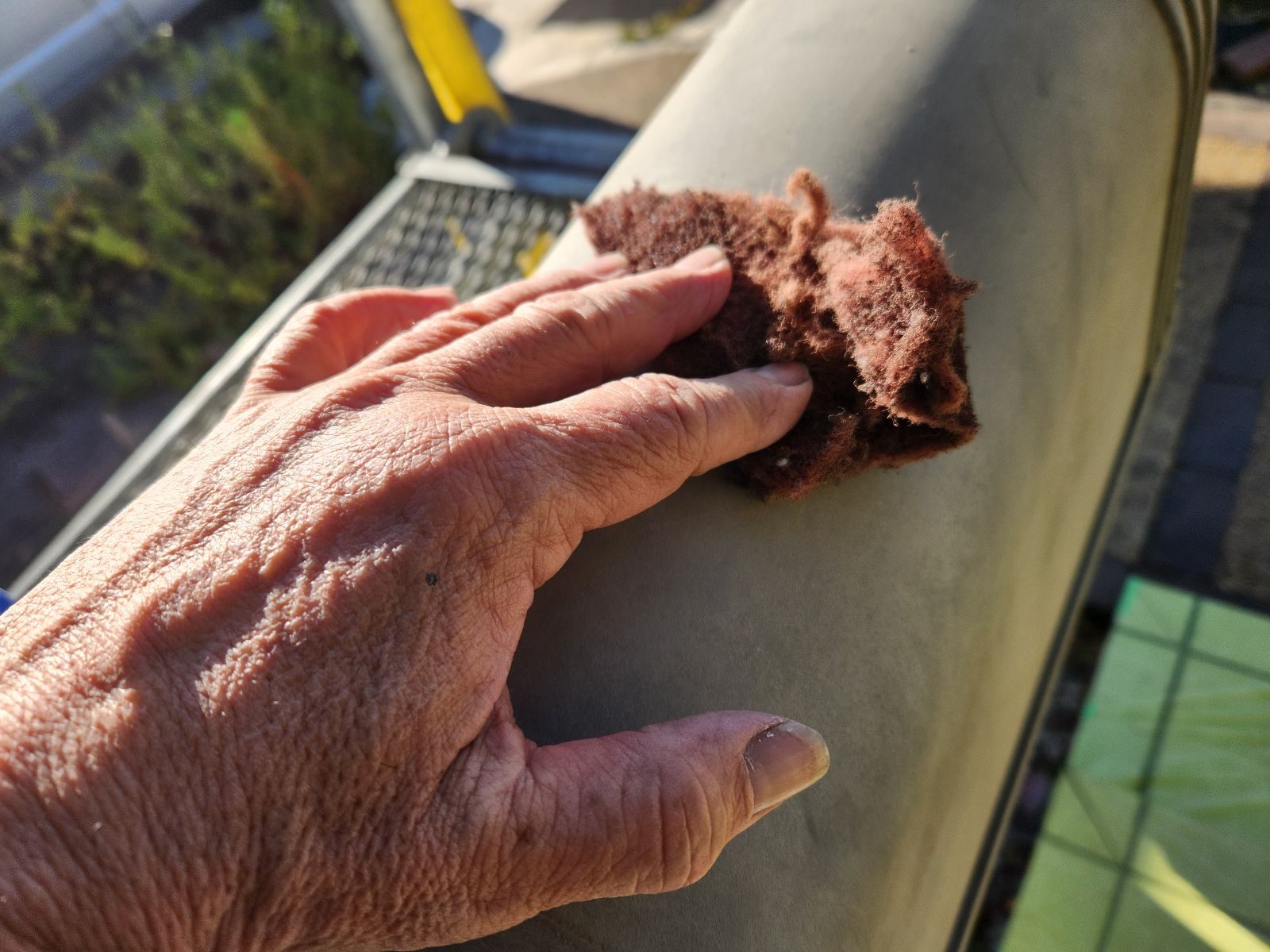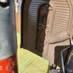 室外機カバー塗装 1回目・2回目の様子です