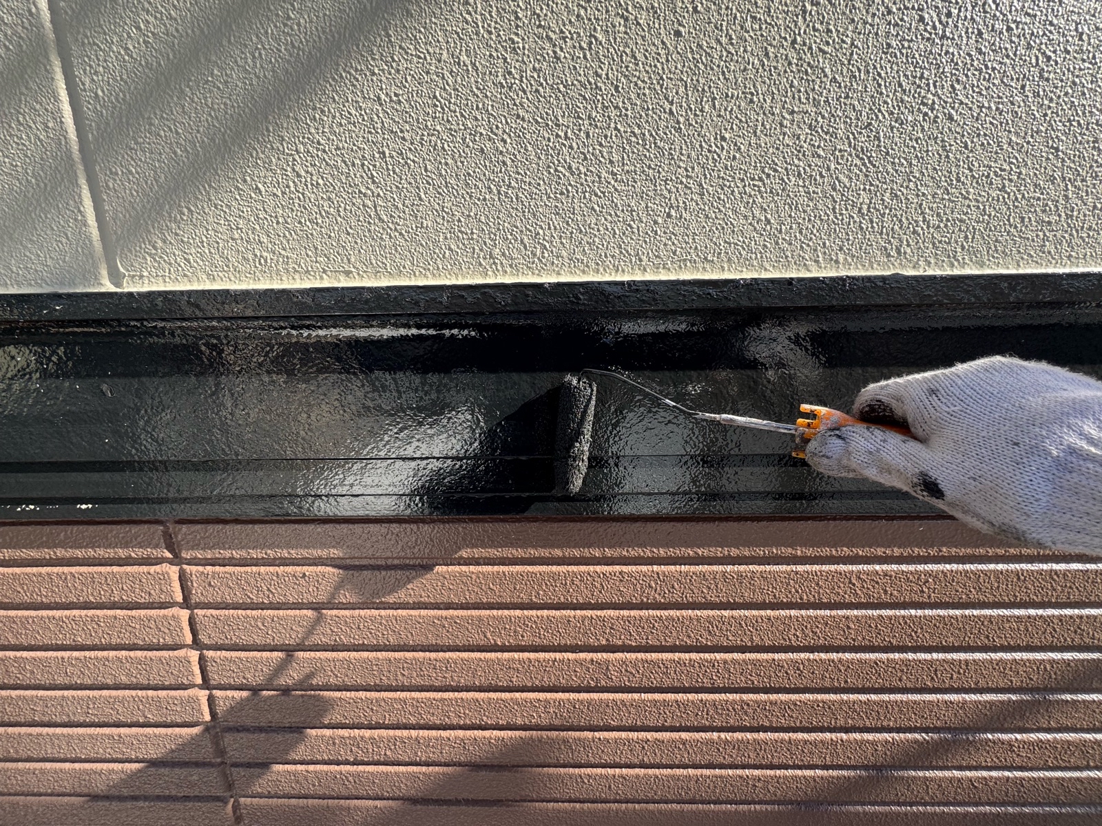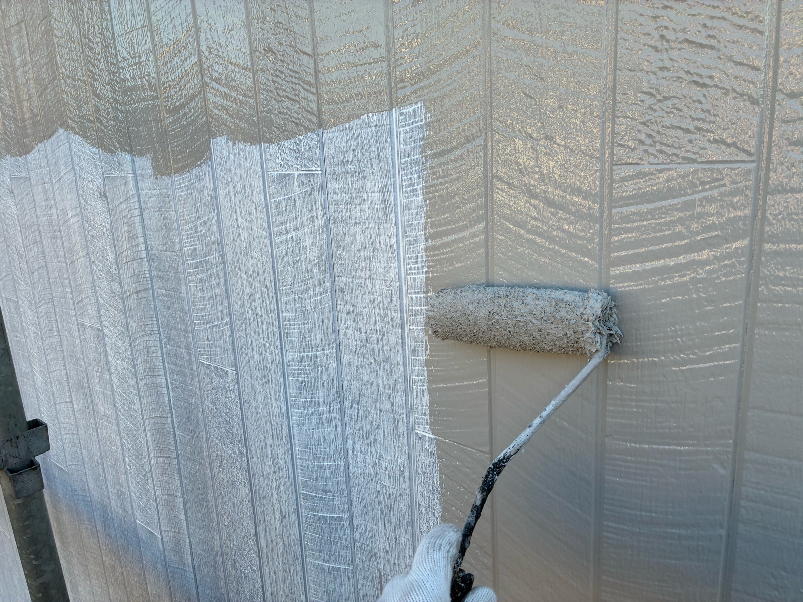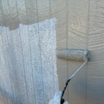 外壁塗装作業 上塗り1回目の様子です