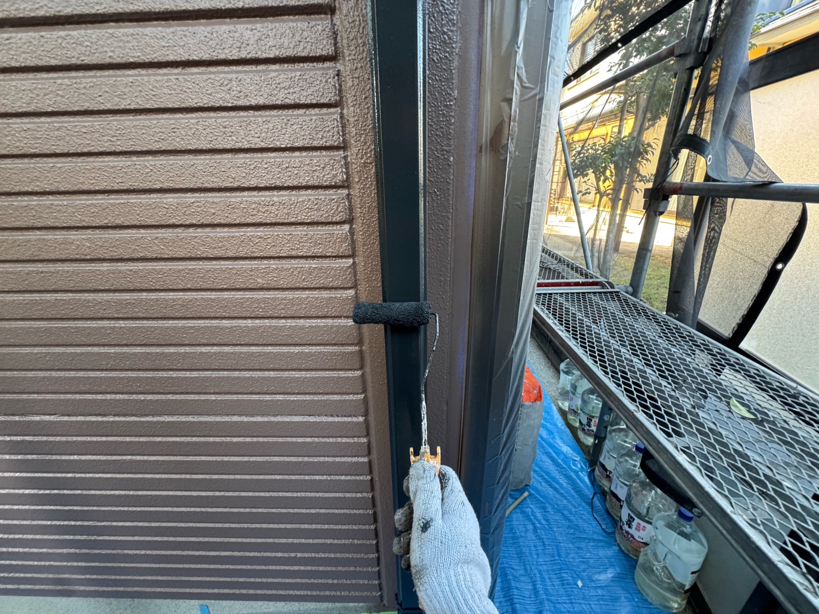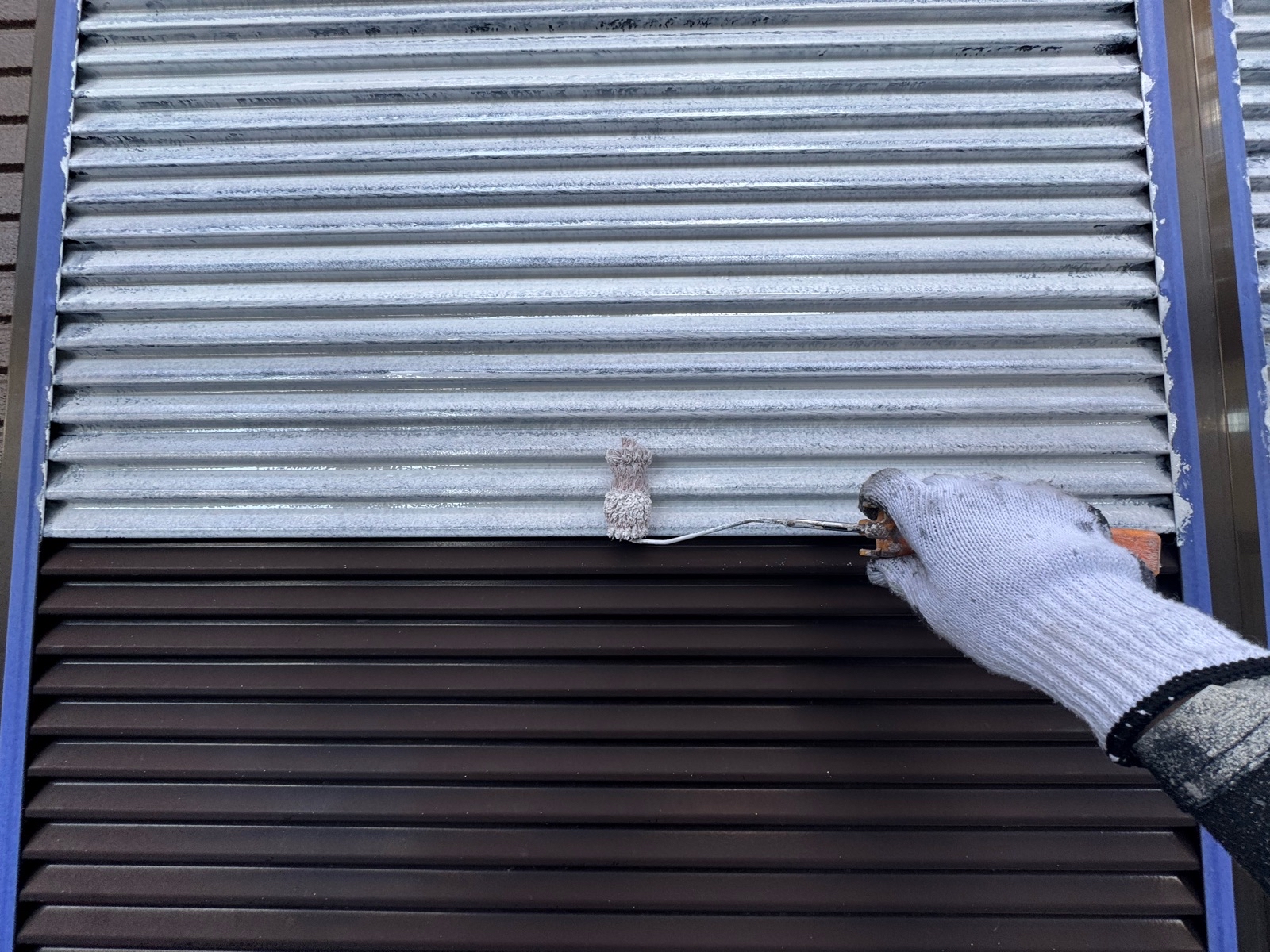 雨戸塗装 上塗り1回目の様子です