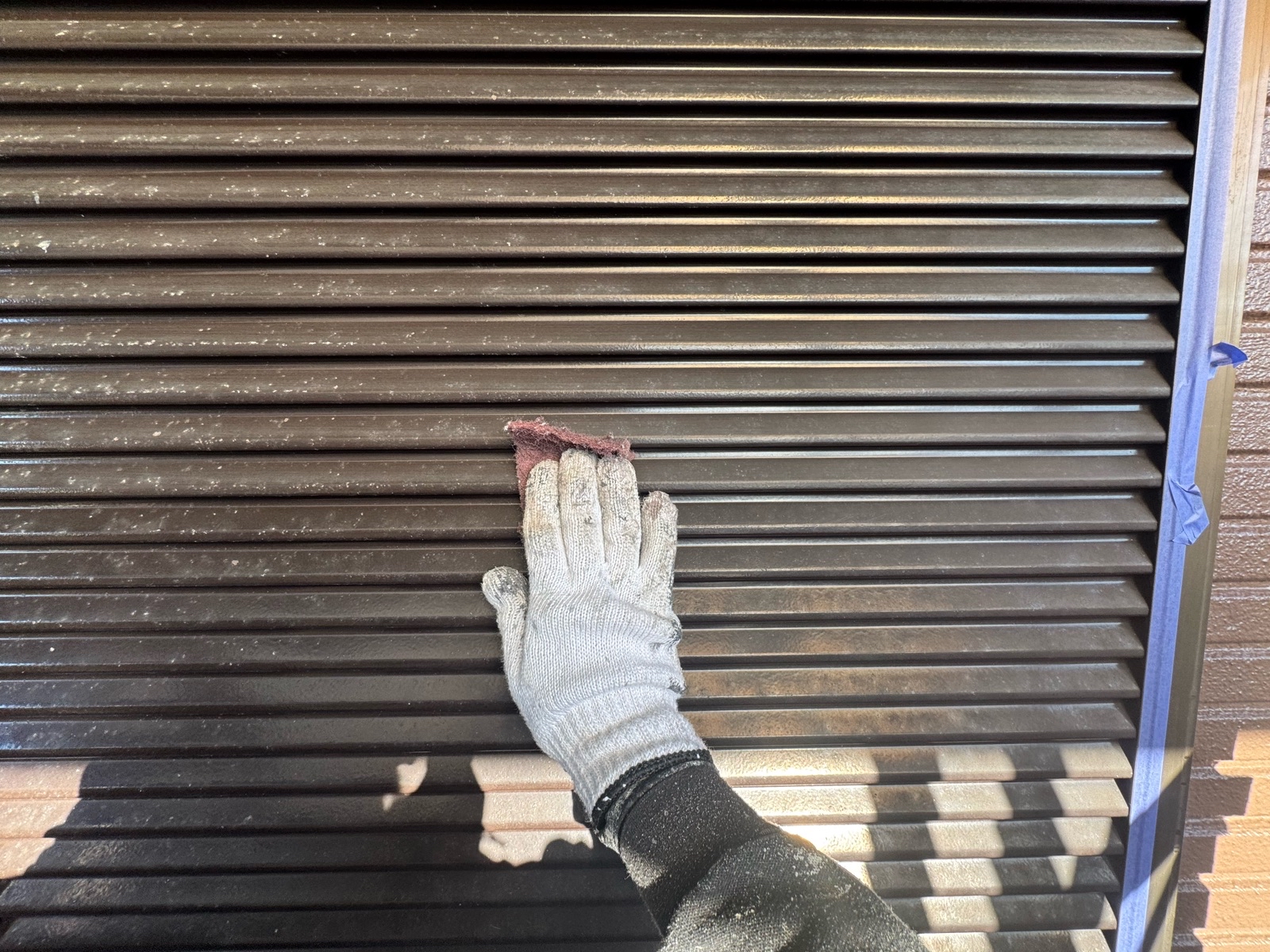 雨戸 ケレン作業、下塗り作業の様子です