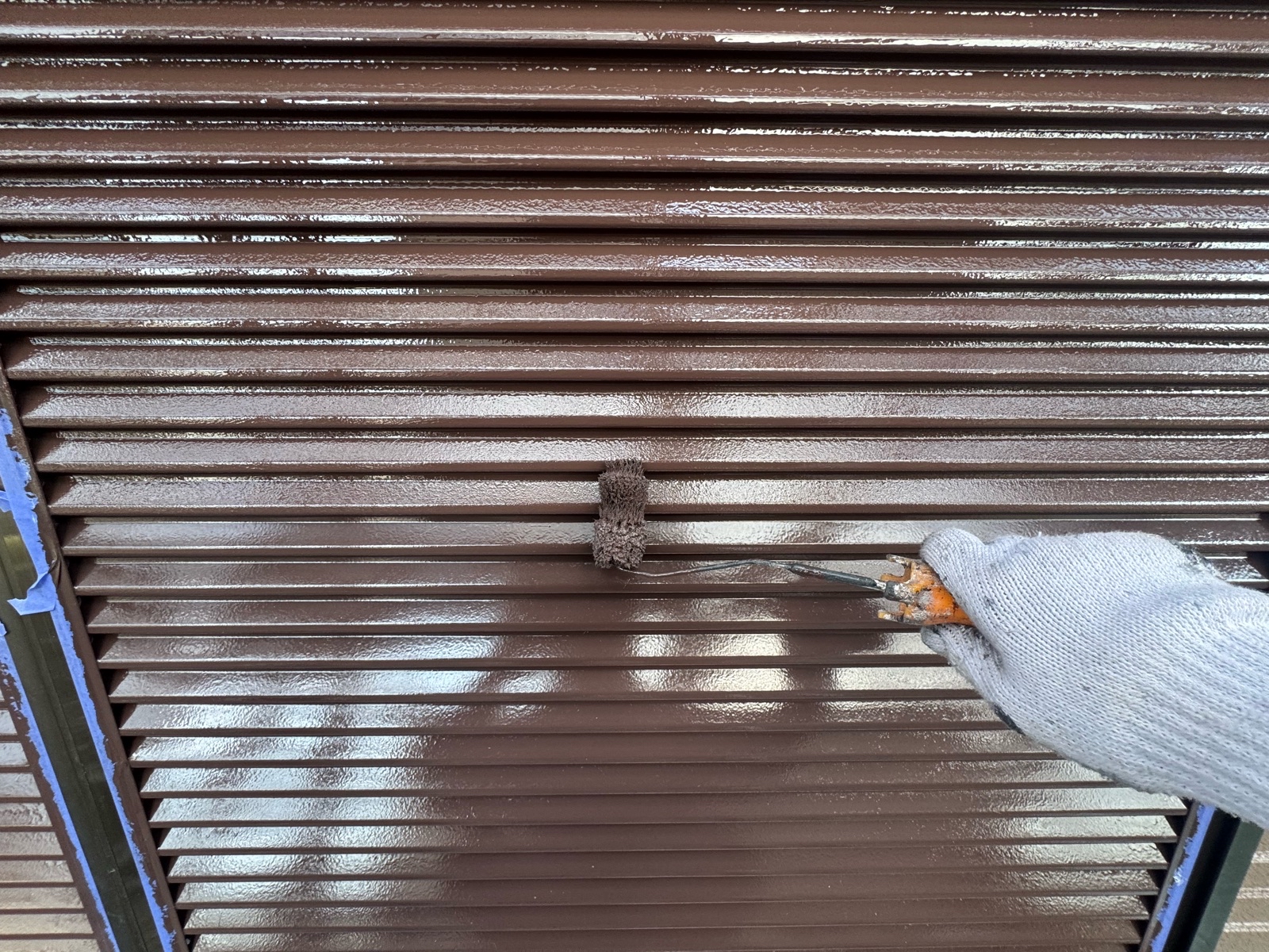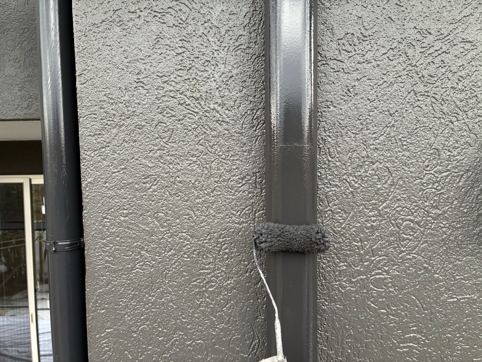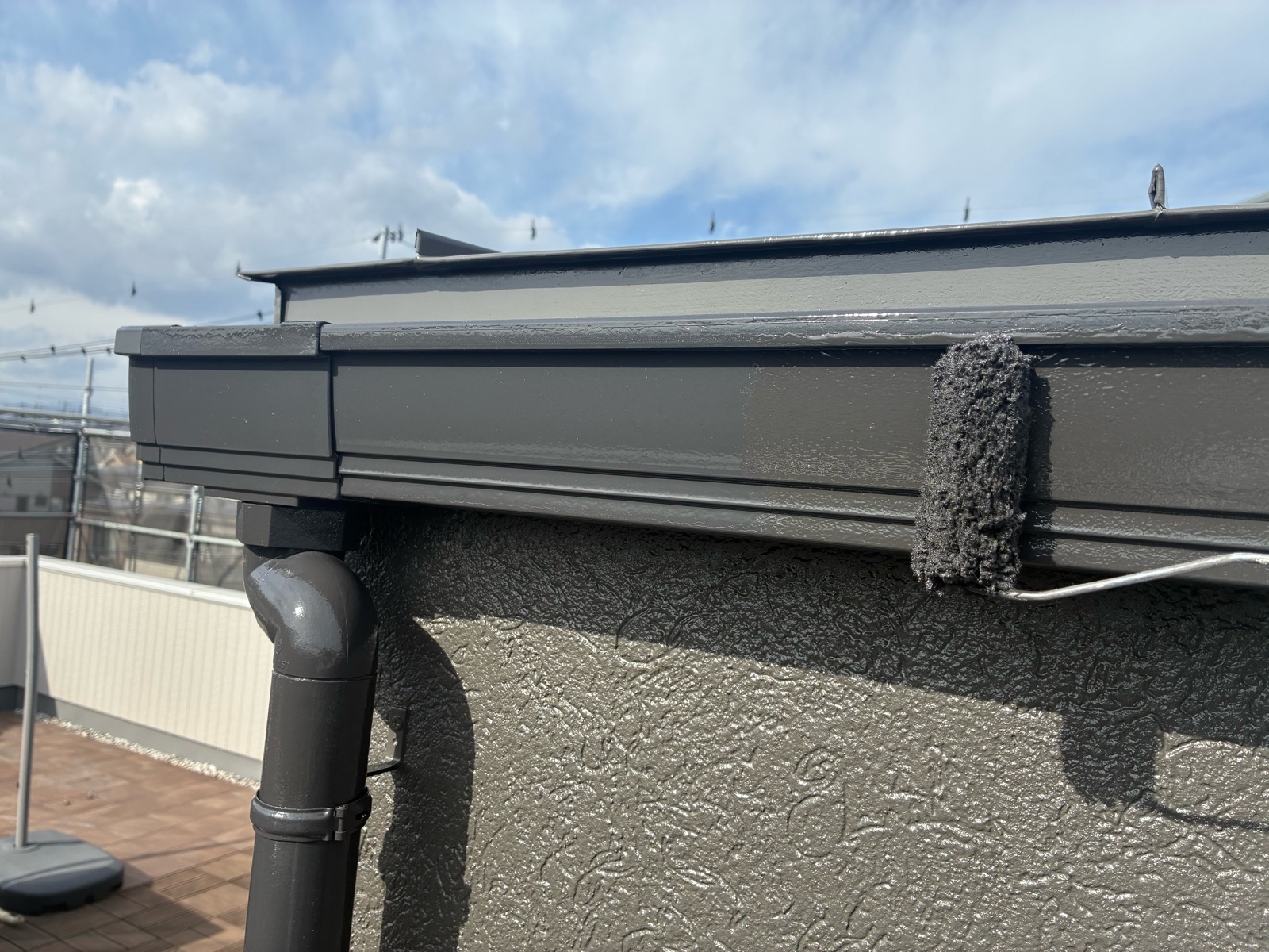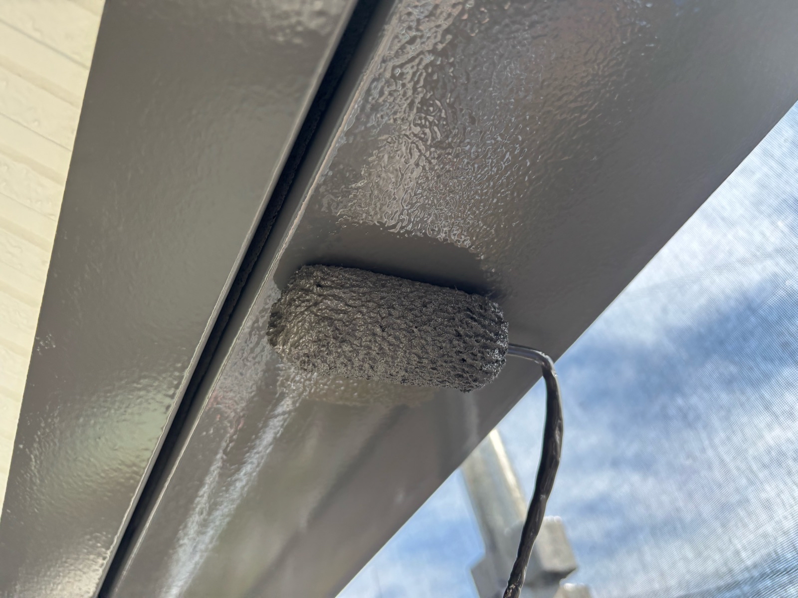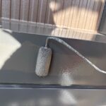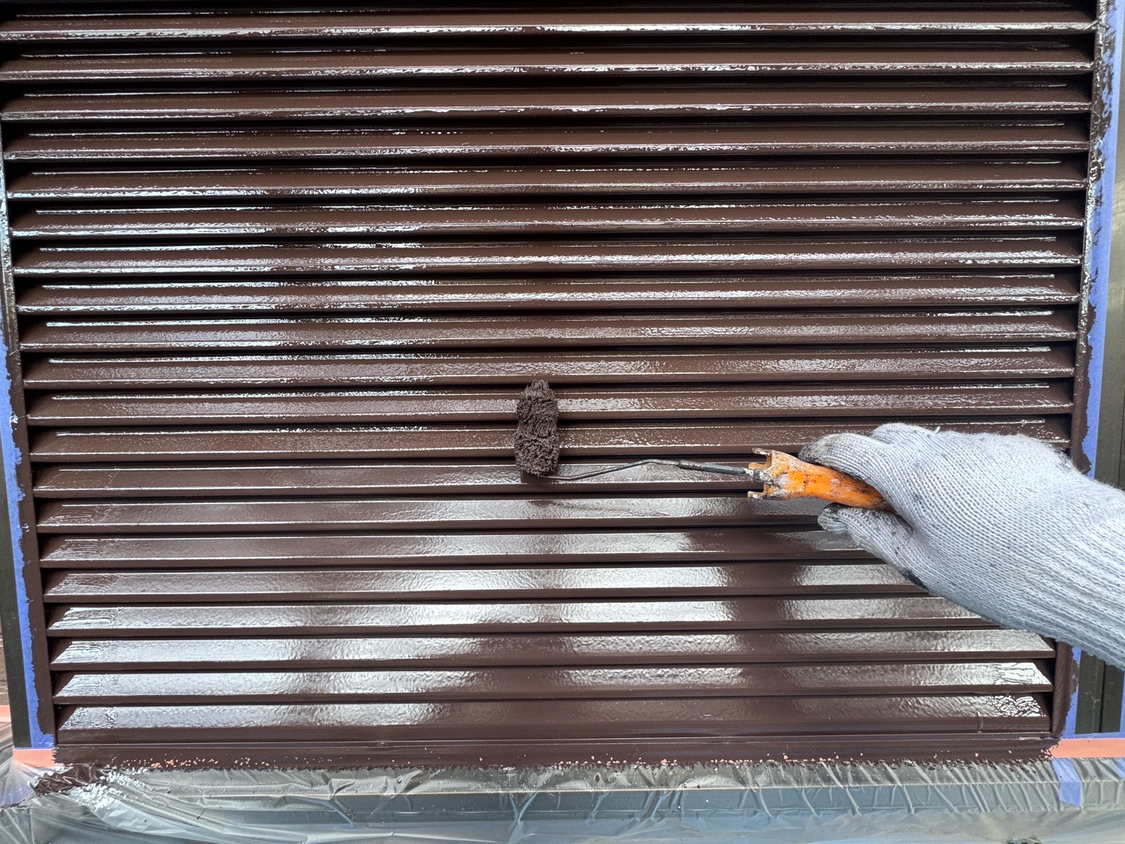 小庇塗装、室外機カバー塗装 2回目の様子です