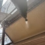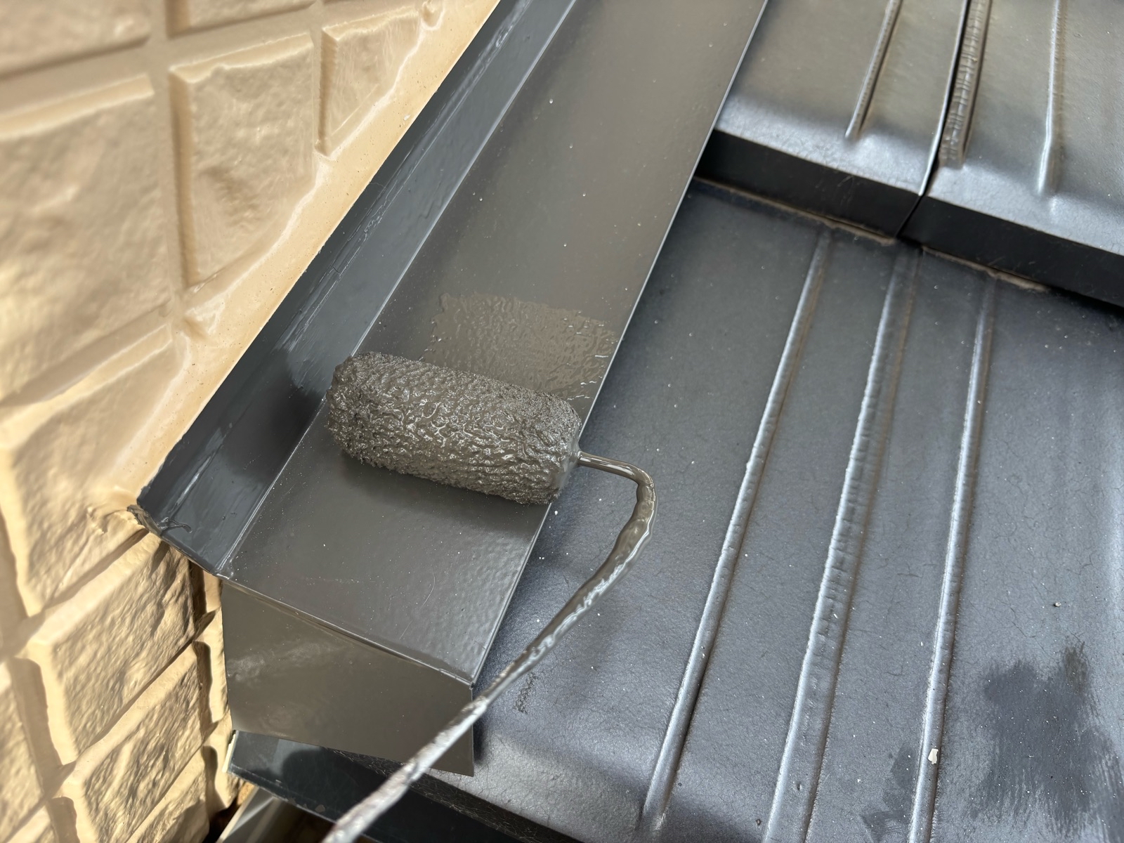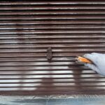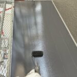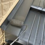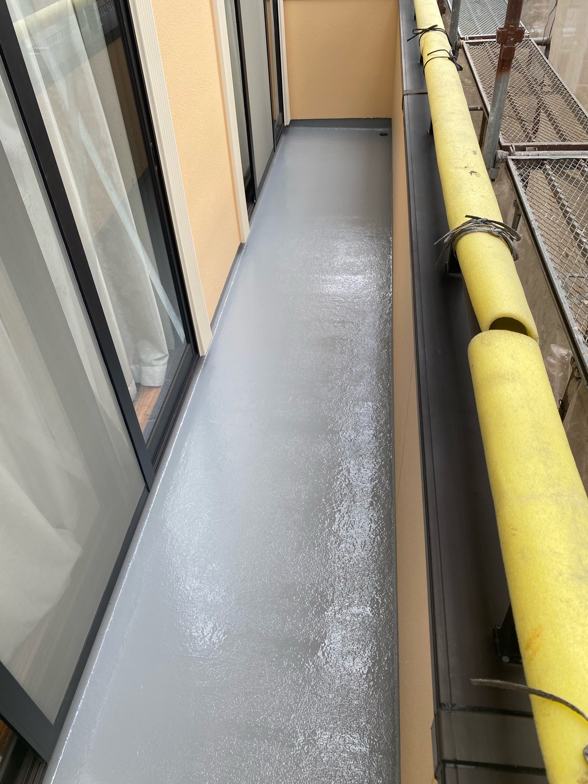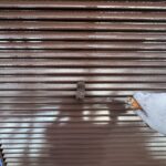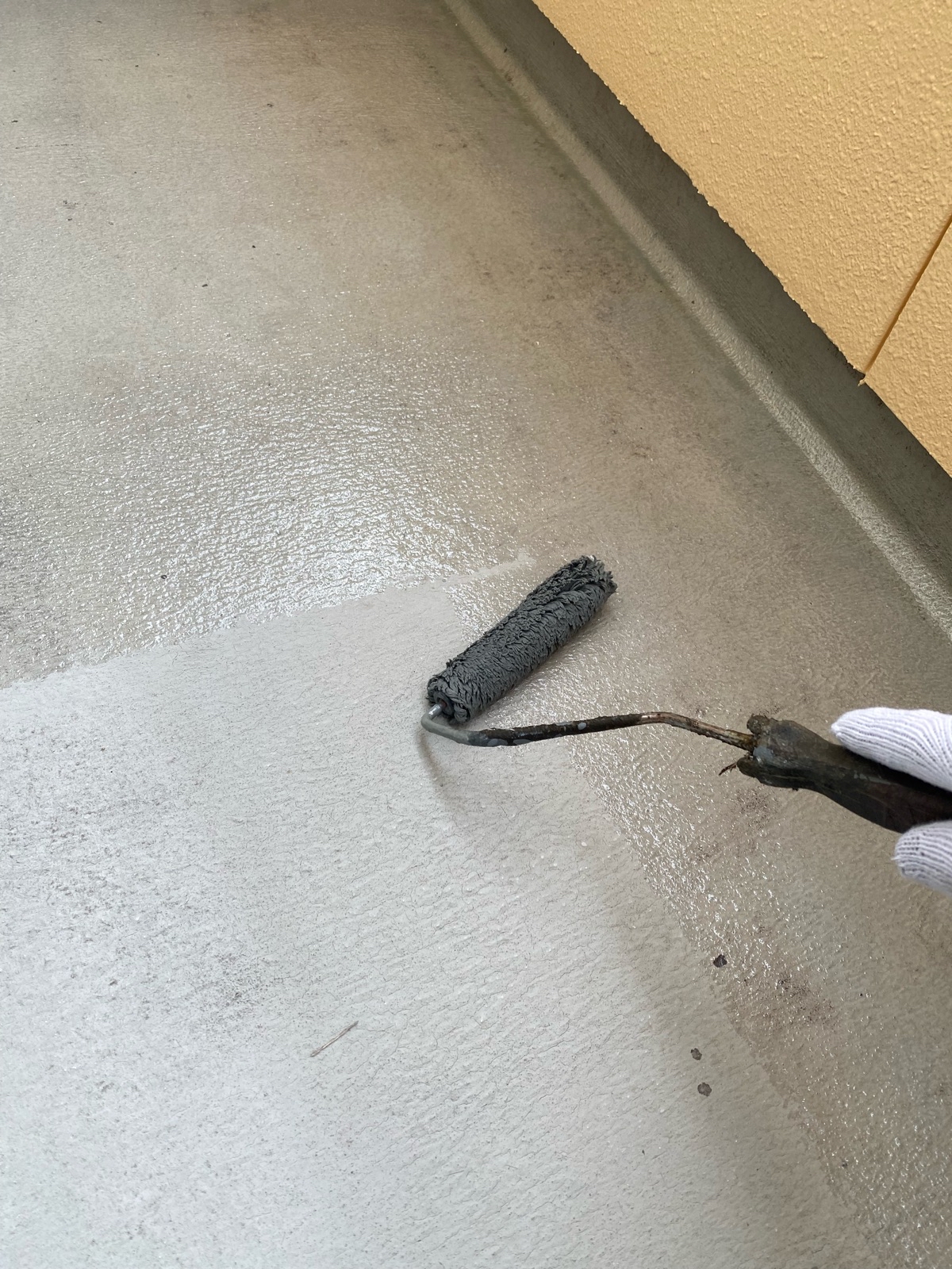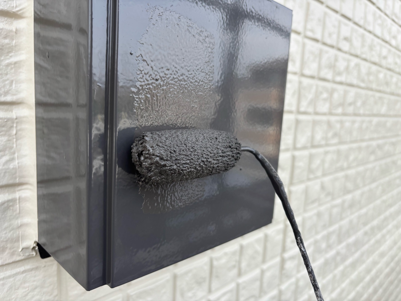小庇塗装、室外機カバー塗装 2回目の様子です