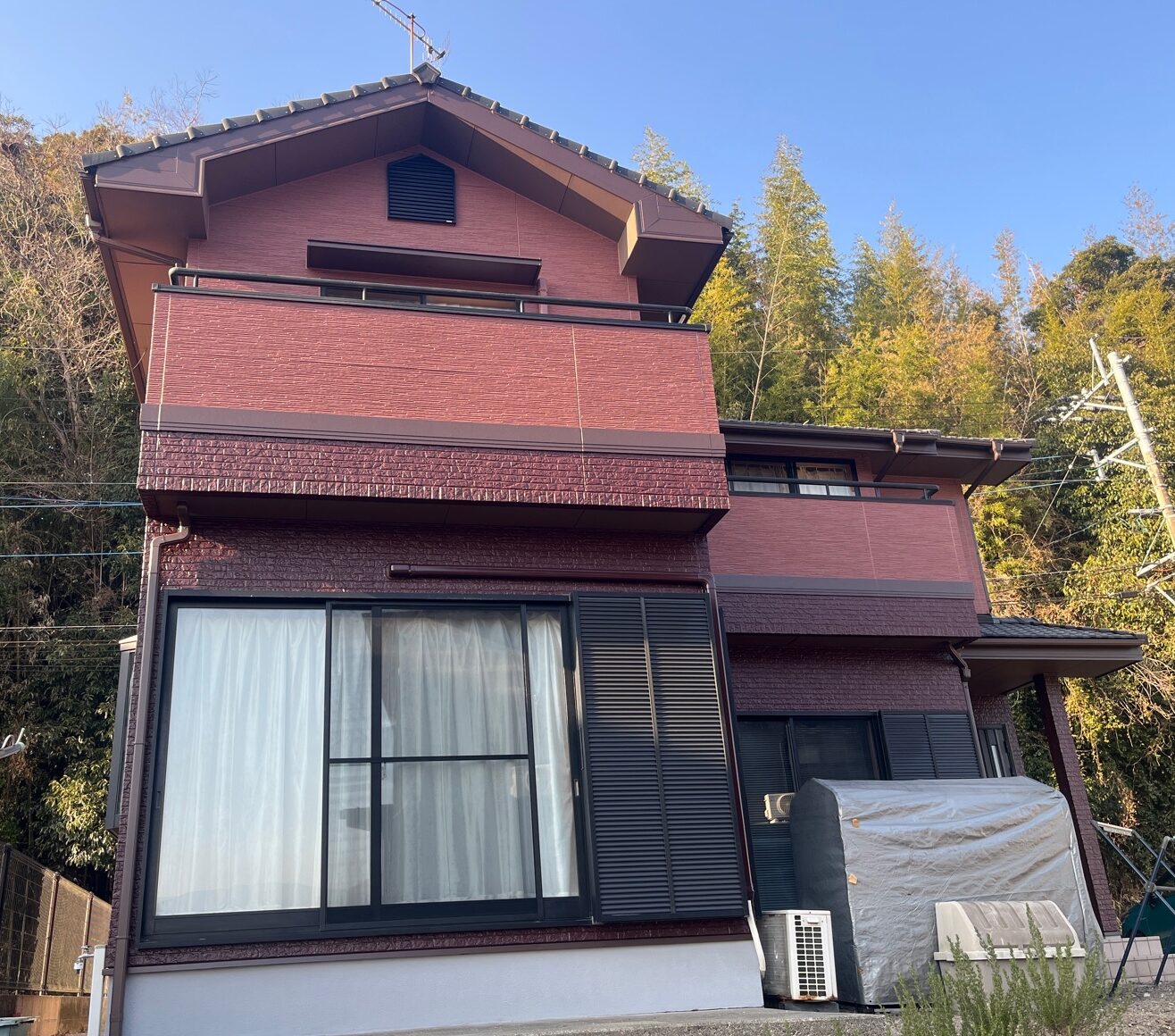 チョコレートブラウンは深い暗さのある赤褐色系のブラウンです。暗めのブラウン色のため、どのような形状の家にもフィットしやすい色です☺やや明るめで柔らかみのあるココアブラウンとの相性は、とても良く「高級感×温かみ」を両立した外観となりました✨