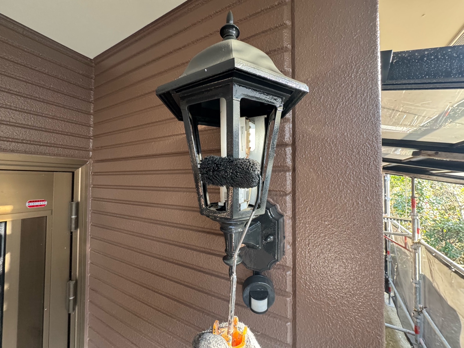 玄関灯塗装、ポスト塗装 2回目の様子です