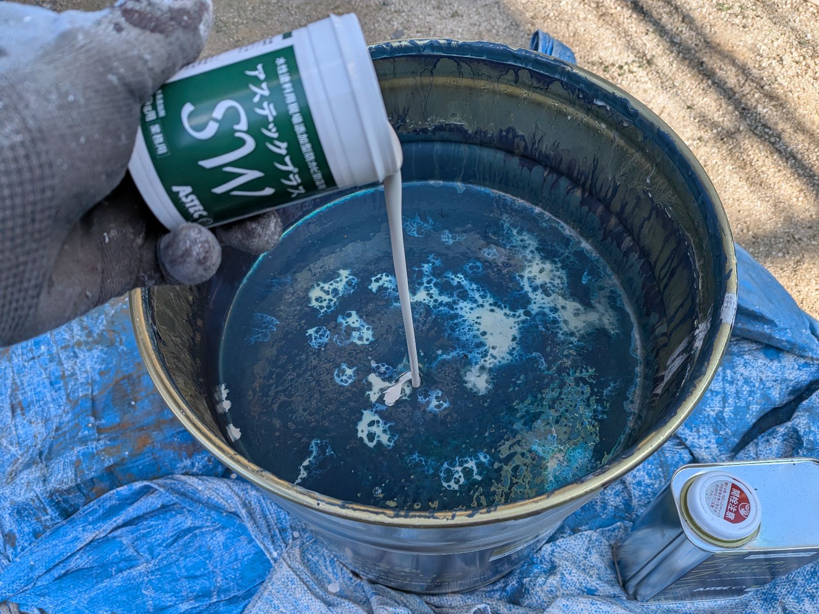 防カビ剤のアステックプラスSWを上塗材に混ぜて使用しています
