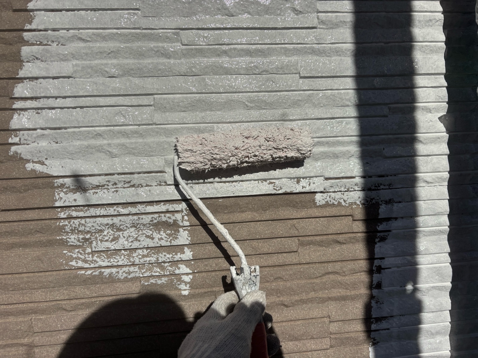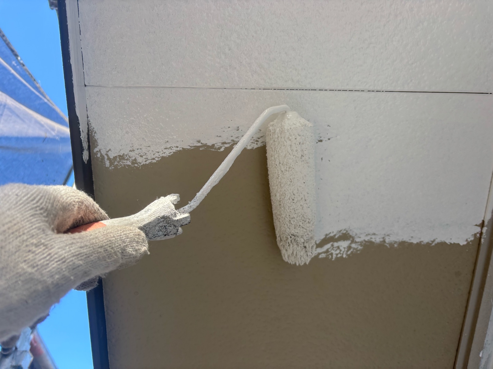 外壁塗装作業 下塗りの様子です