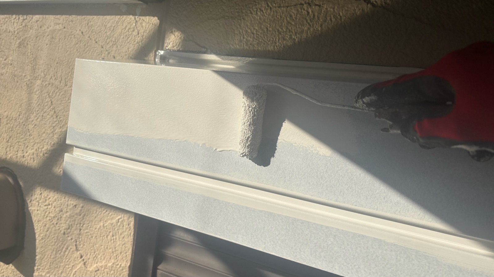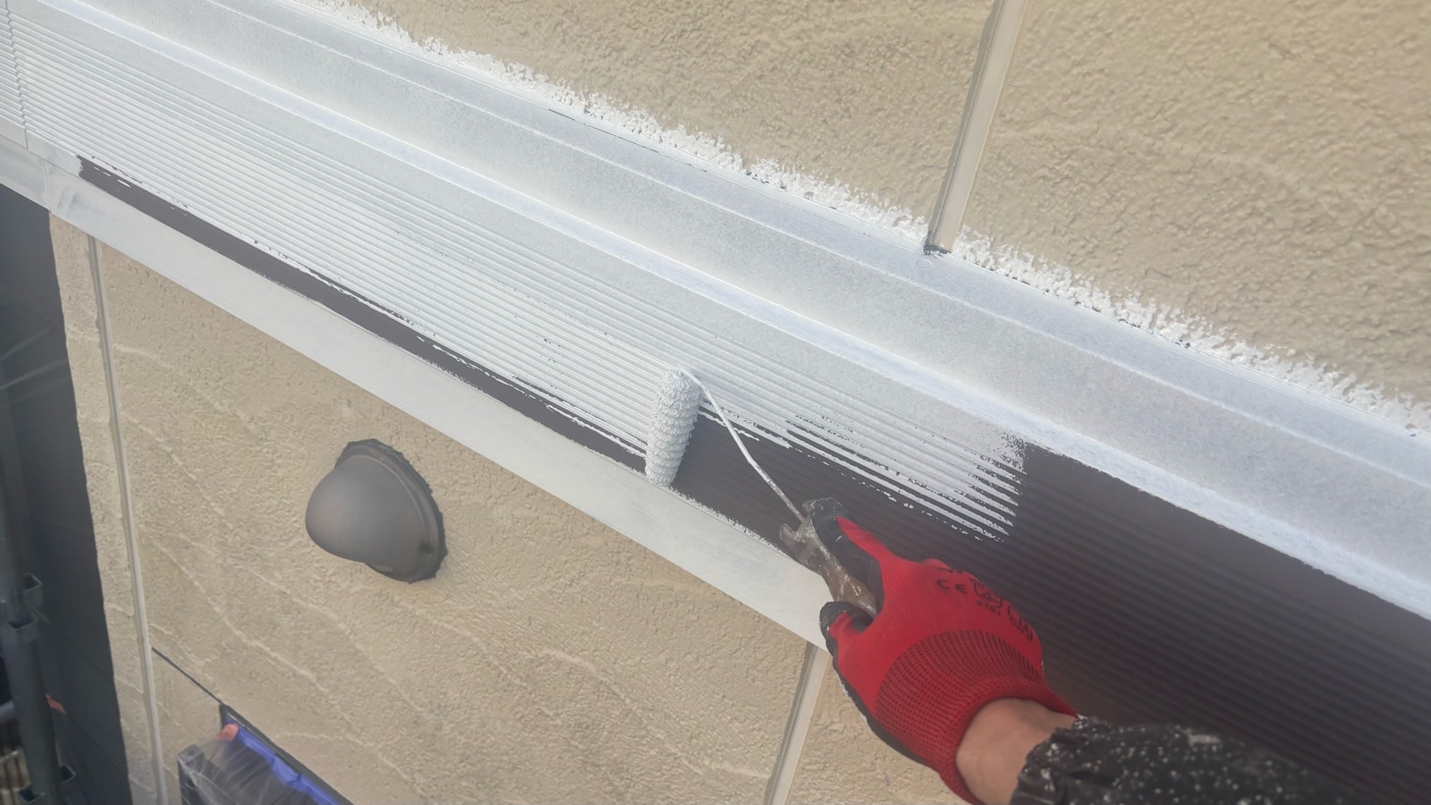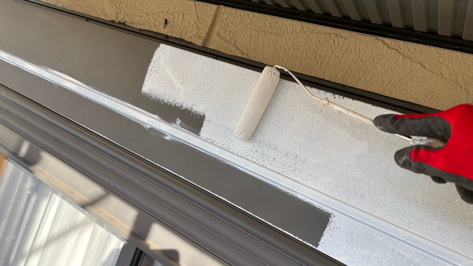 幕板塗装、シャッターBOX塗装 1回目の様子です