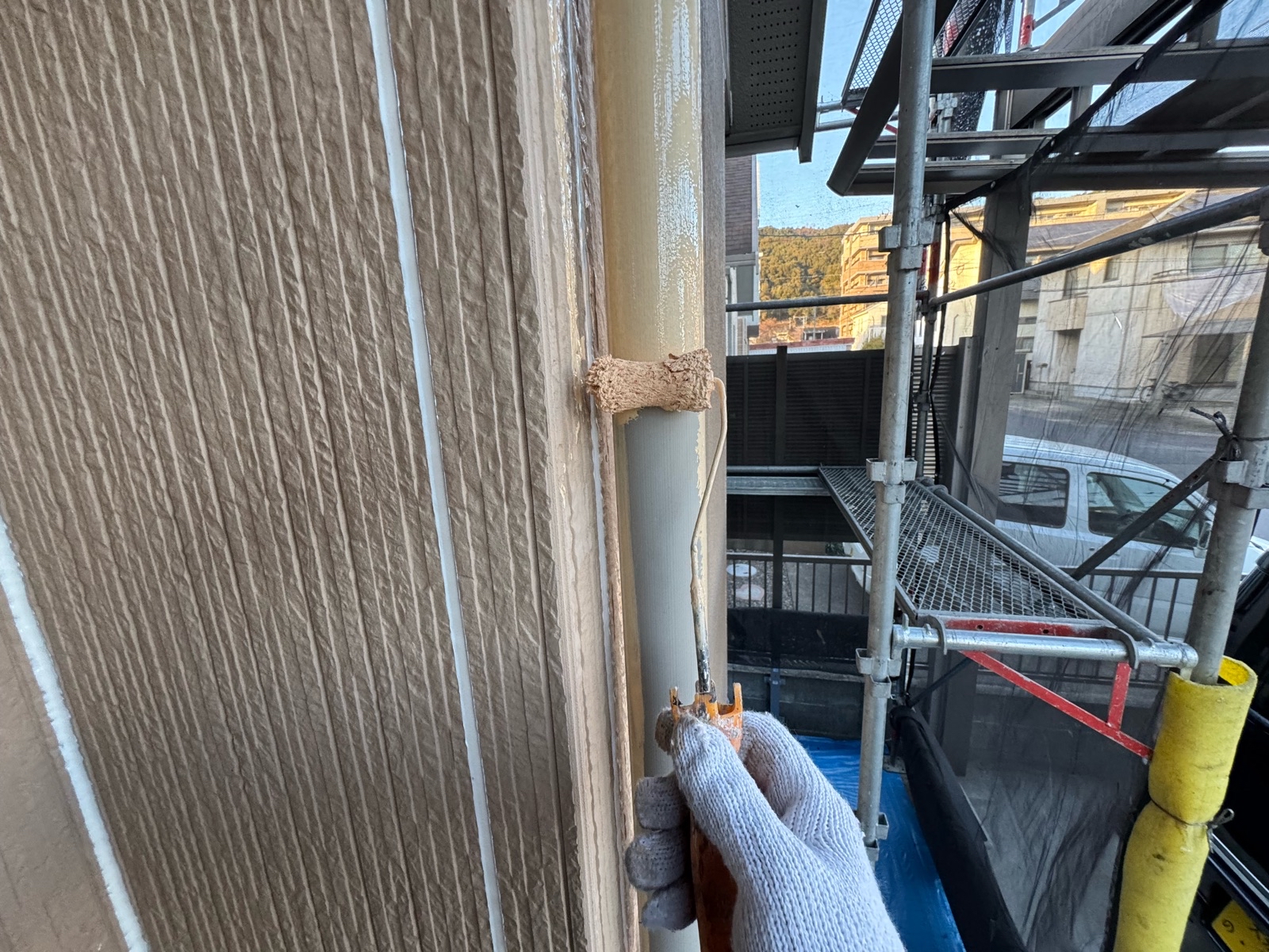 外壁塗装作業 上塗り2回目の様子です