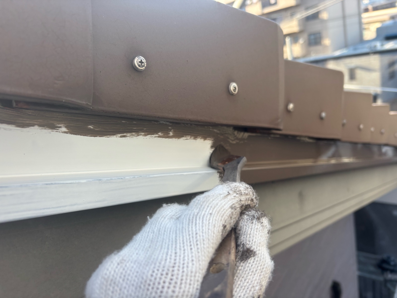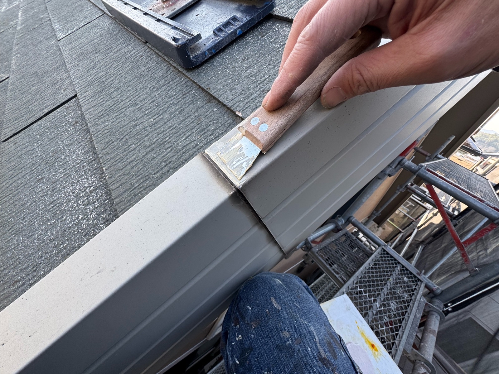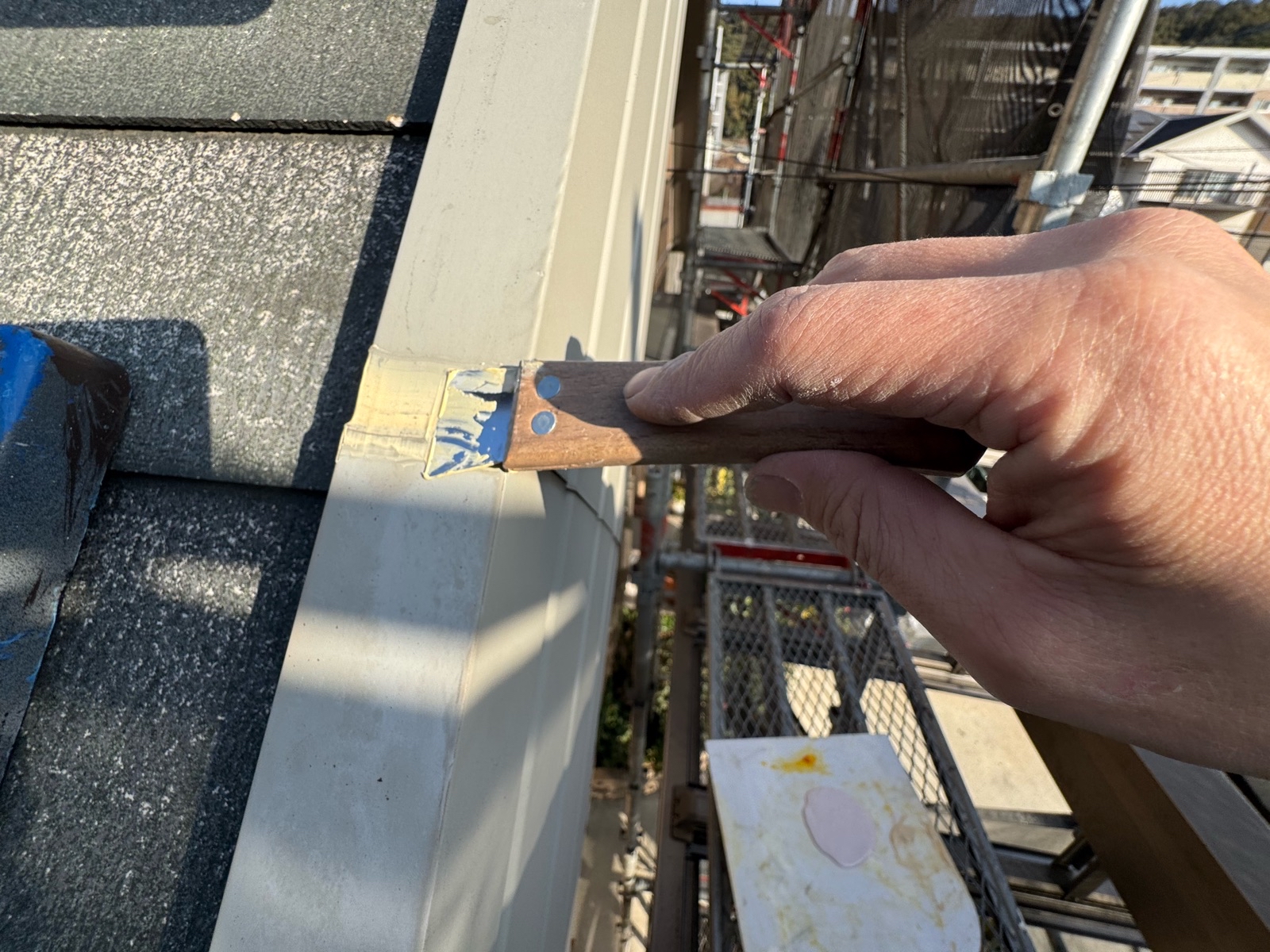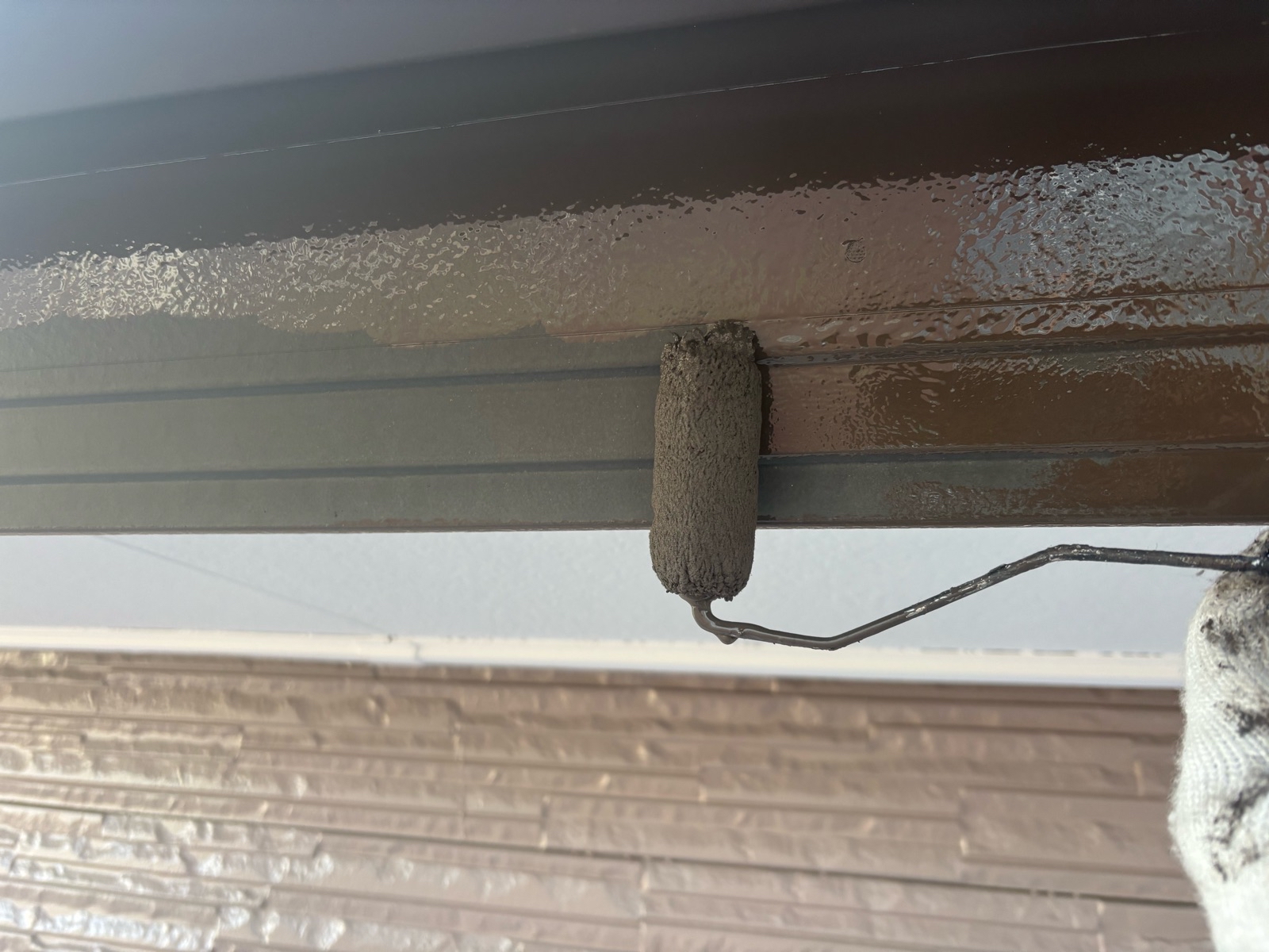 雨樋塗装、鼻隠し・破風板塗装 2回目の様子です
